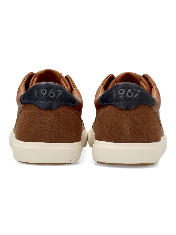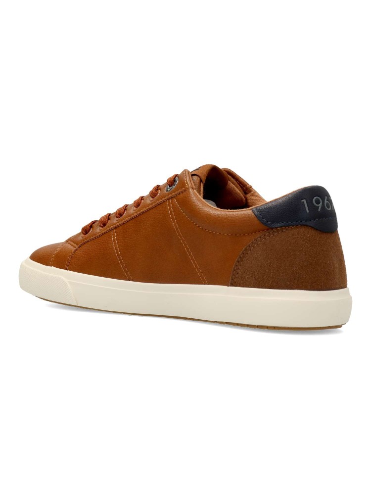 Zapatilla Aria Mustang para chico, con diseño minimalista. Cierre de cordones. Sneakers cómoda, fabricada en piel sintética, con suela de goma. Plantilla acolchada. Color cuero. Informales pero arregladas, llegarás a donde te propongas.
