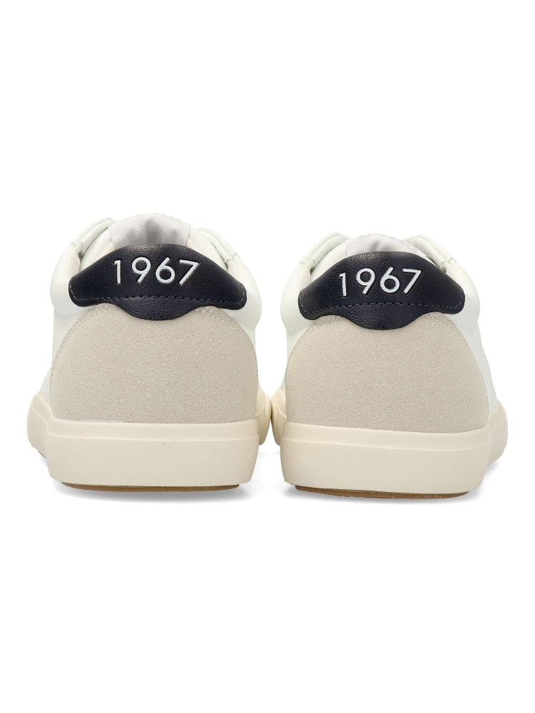 Zapatilla Aria Mustang para chico, con diseño minimalista. Cierre de cordones. Sneakers cómoda, fabricada en piel sintética, con suela de goma. Plantilla acolchada. Color blanco. Informales pero arregladas, llegarás a donde te propongas.