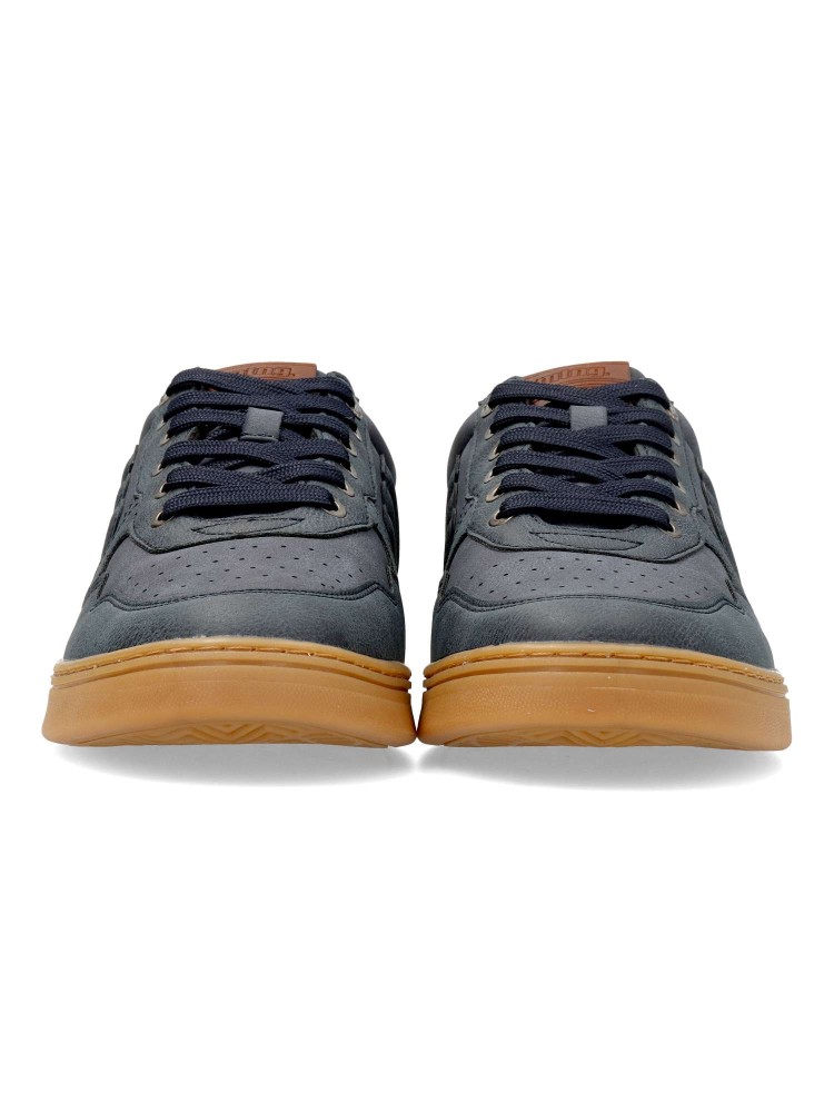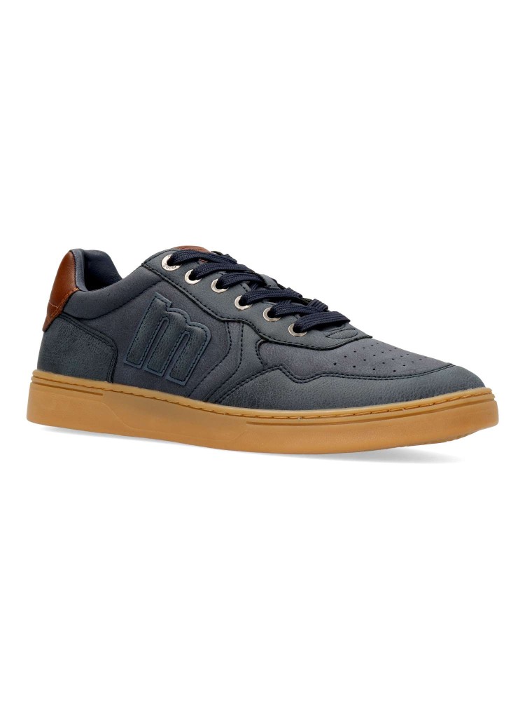 Zapatillas para hombre de Mustang, color marino. Sneakers cómodo, fabricado en piel sintética, con suela de goma color caramelo. Opción versátil y cómoda para el día a día, perfecta para quienes buscan un calzado casual con un toque moderno y funcional.
