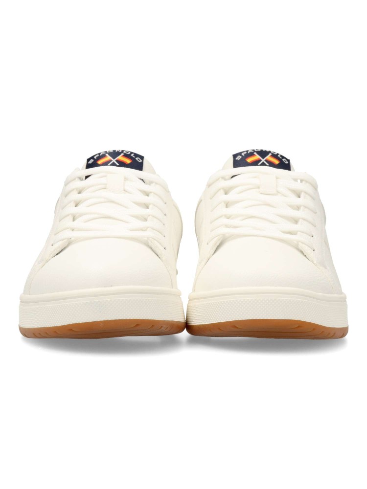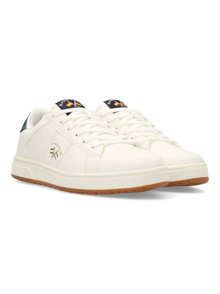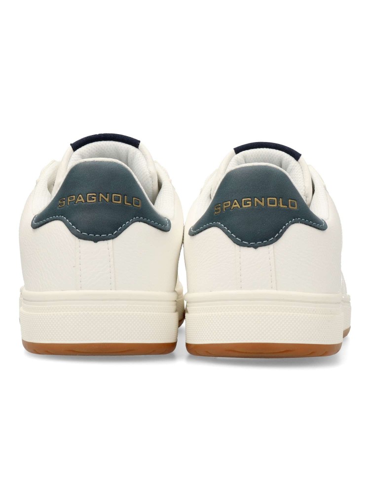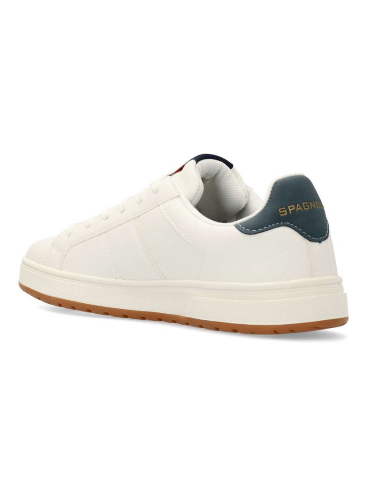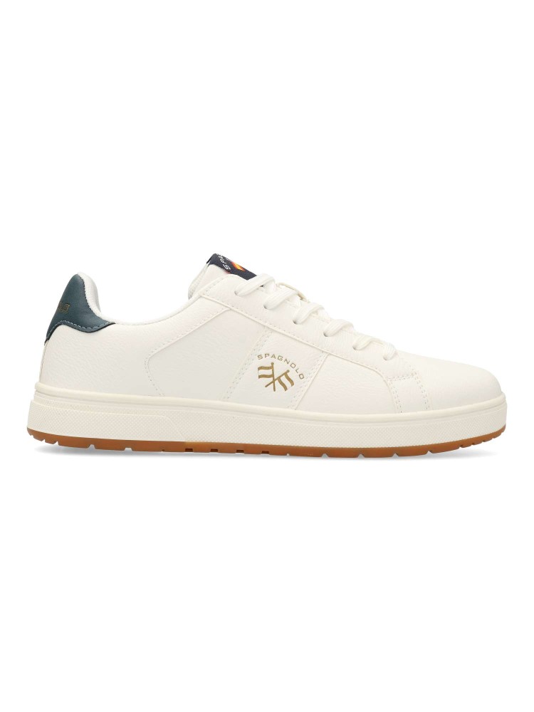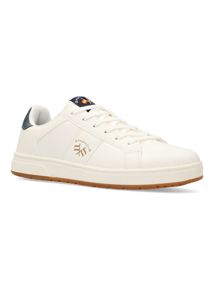 Zapatilla casual de hombre, estilo deportivo. Cierre de cordones. Sneakers cómodo, fabricado en piel sintética, con suela de goma. Plantilla acolchada y extraíble. Color blanco. Personalizada con Spagnolo en lateral. Ideal con tus looks urbanos.