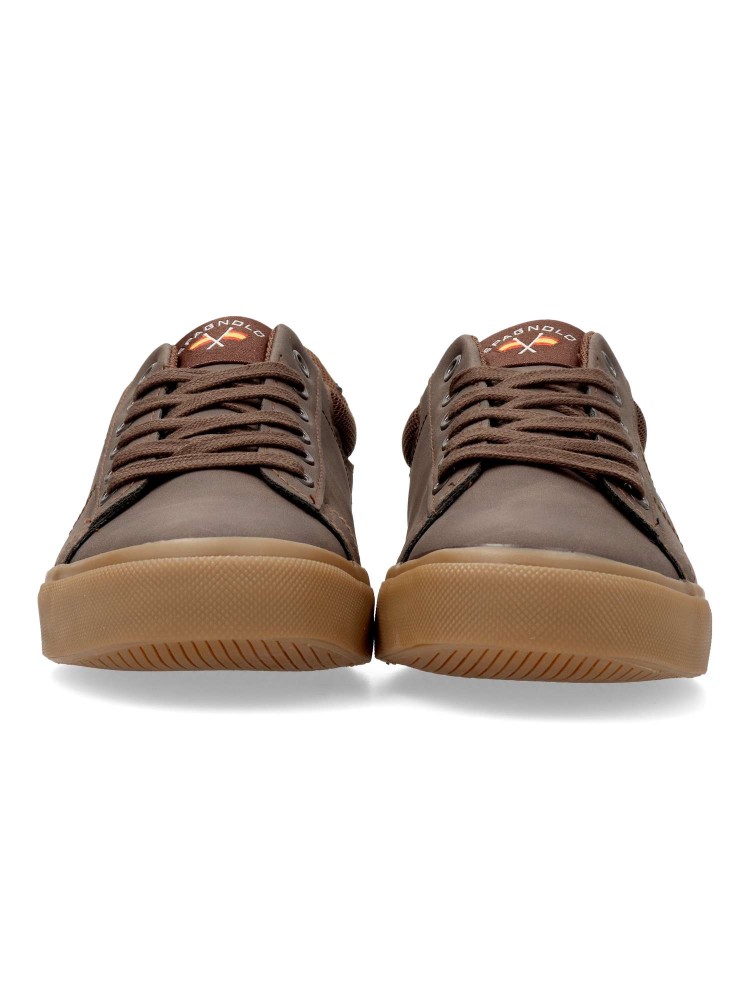 Zapatilla casual de hombre, estilo deportivo. Cierre de cordones. Sneakers cómodo, fabricado en piel sintética, con suela de goma. Plantilla acolchada y extraíble. Color marrón. Personalizada con Spagnolo en lateral. Ideal con tus looks urbanos.