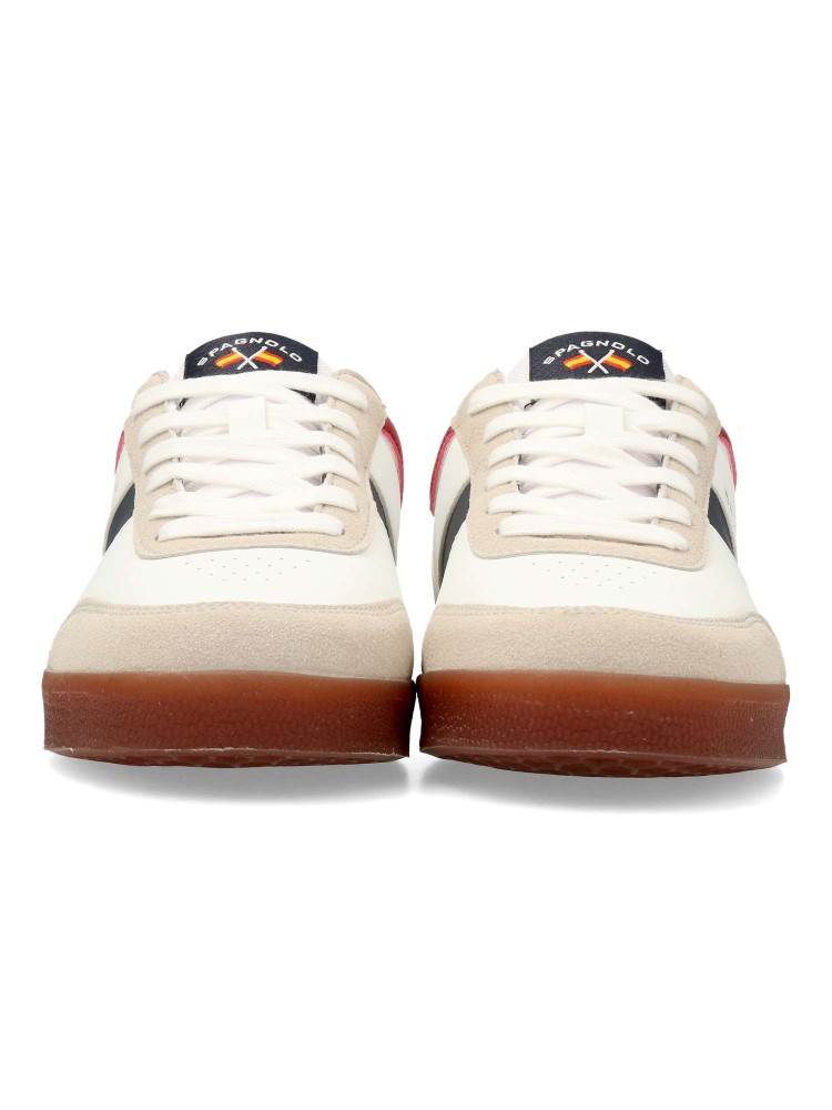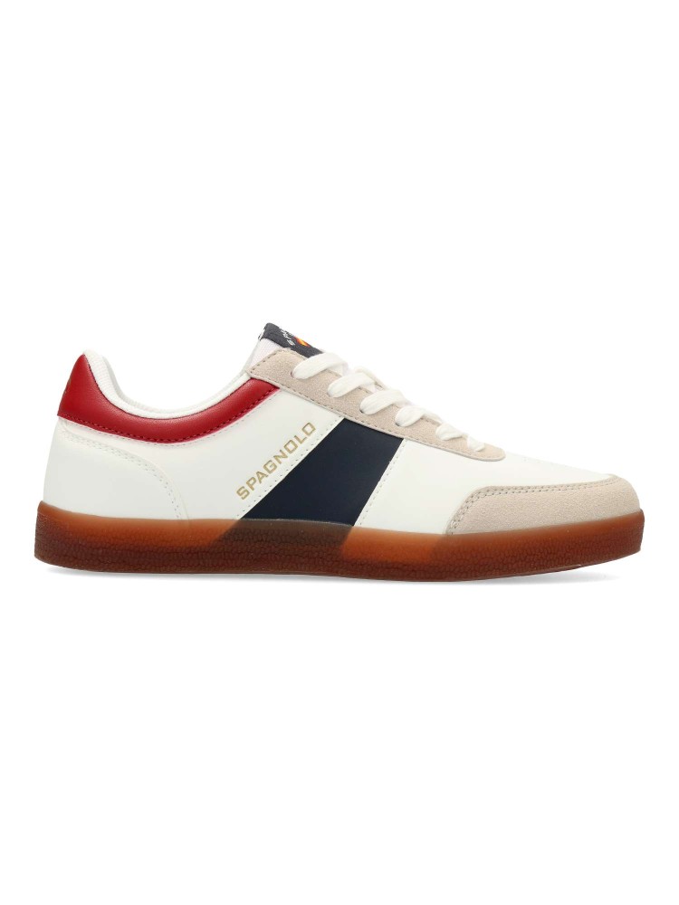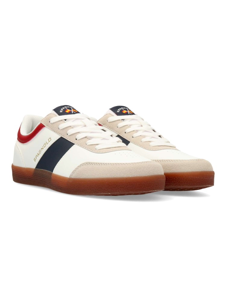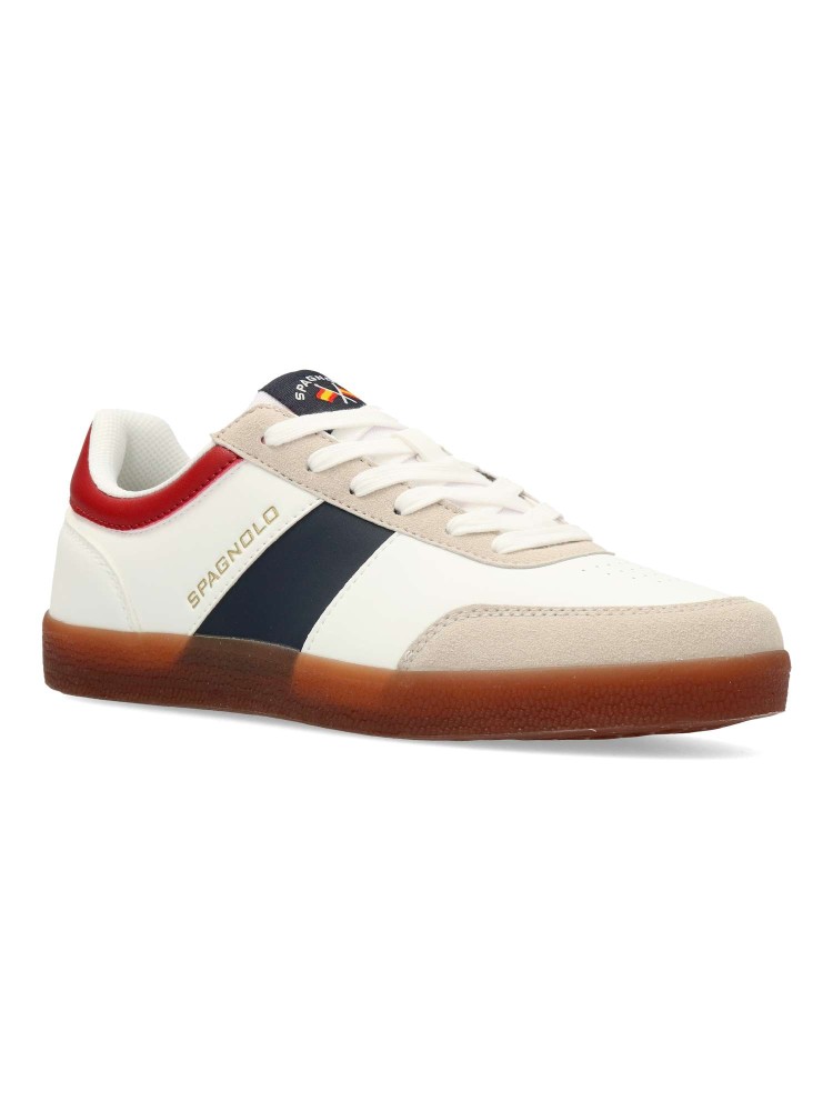 Zapatilla casual de hombre, estilo deportivo. Cierre de cordones. Sneakers cómodo, fabricado en piel sintética, con suela de goma color caramelo. Plantilla acolchada y extraíble. Personalizada con Spagnolo en lateral. Ideal con tus outfits urbanos.