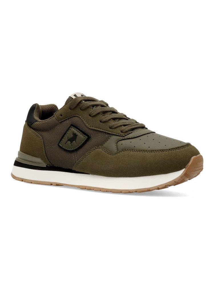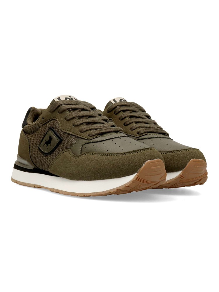 Deportiva de hombre, estilo casual. Sneakers cómodo, fabricado en piel sintética y textil, con mediasuela EVA y suela de goma antideslizante. Plantilla acolchada. Color kaki. Diseño y confort para combinar con tu outfit urbano.