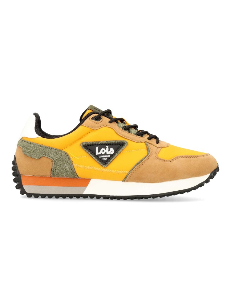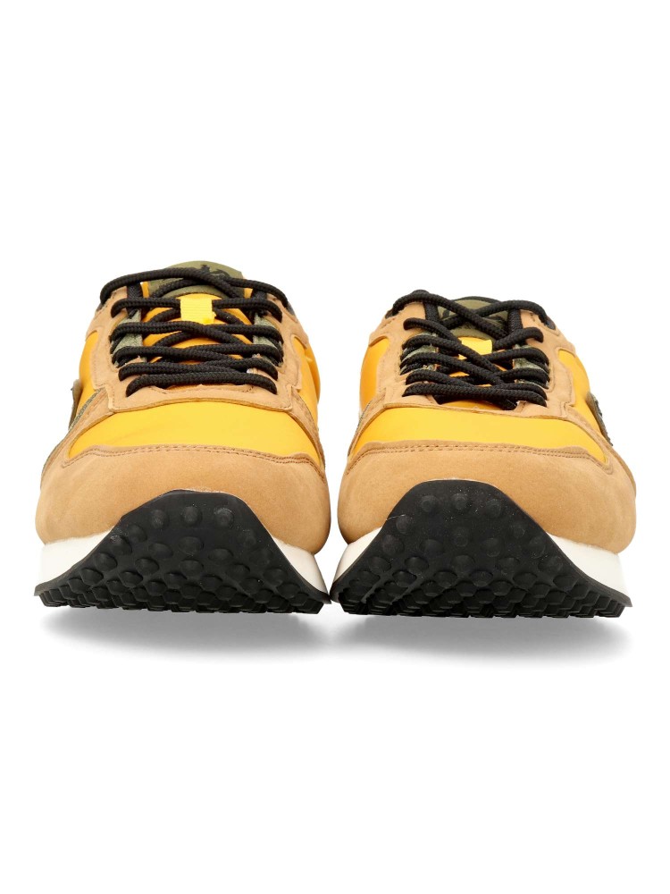 Deportiva de hombre, estilo casual. Sneakers cómodo, fabricado en piel sintética y textil, con mediasuela EVA y suela de goma antideslizante. Plantilla acolchada Shock Absortion. Color mostaza. Diseño y confort para combinar con tu outfit urbano.