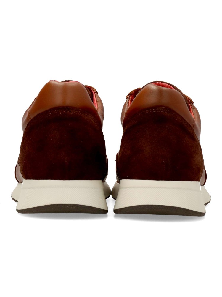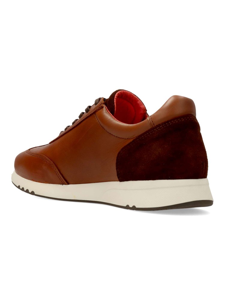 Zapato deportivo de hombre, estilo casual. Cierre de cordones. Sneakers cómodo, fabricado en piel, con suela de goma. Plantilla acolchada. Color coñac. Diseño y confort, ideal con tu estilo urbano y más arreglado.