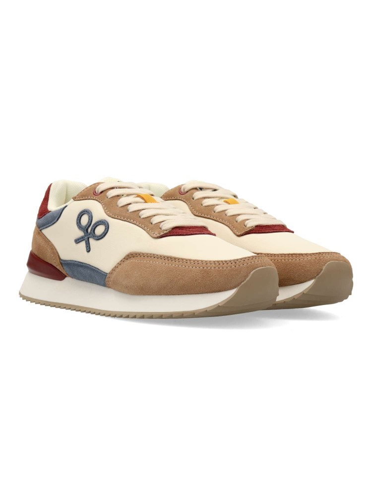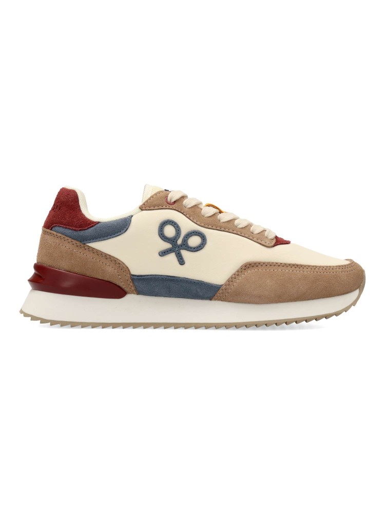 Zapatilla running style confeccionadas en piel serraje y tejido técnico. Cierre de cordones. Detalle de logo distintivo de la marca en lateral. Suela de goma ligera. Plantilla acolchada. Color beige-taupe-burdeos. Diseño sport, ideal con tu look informal.