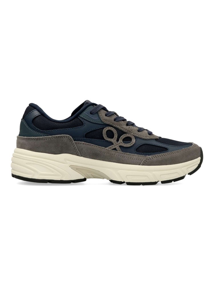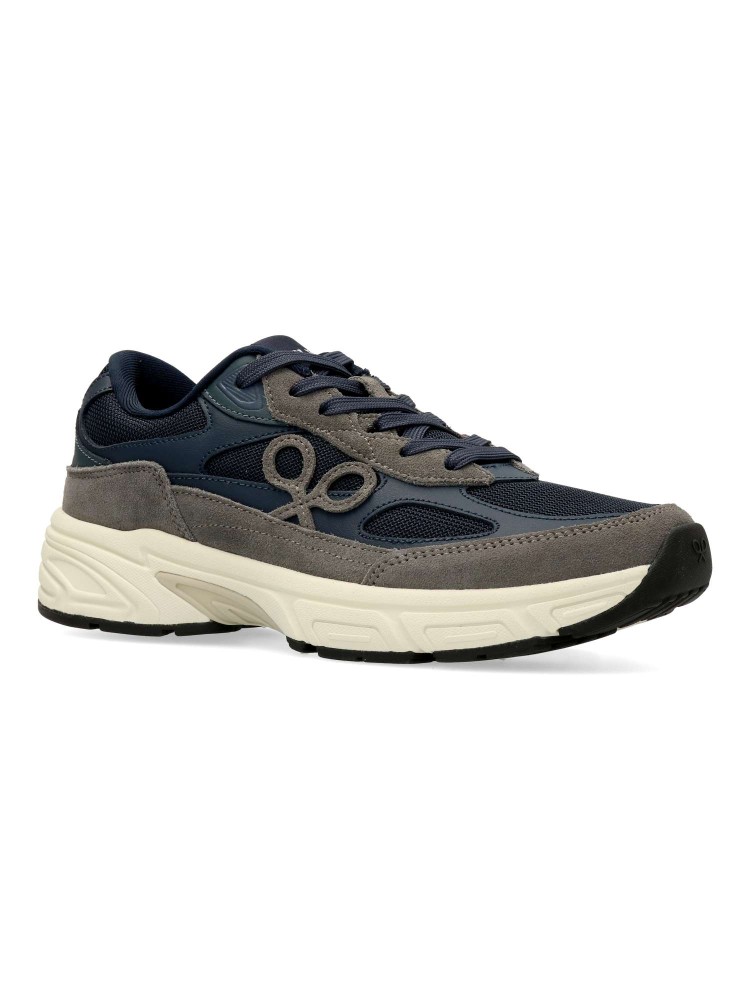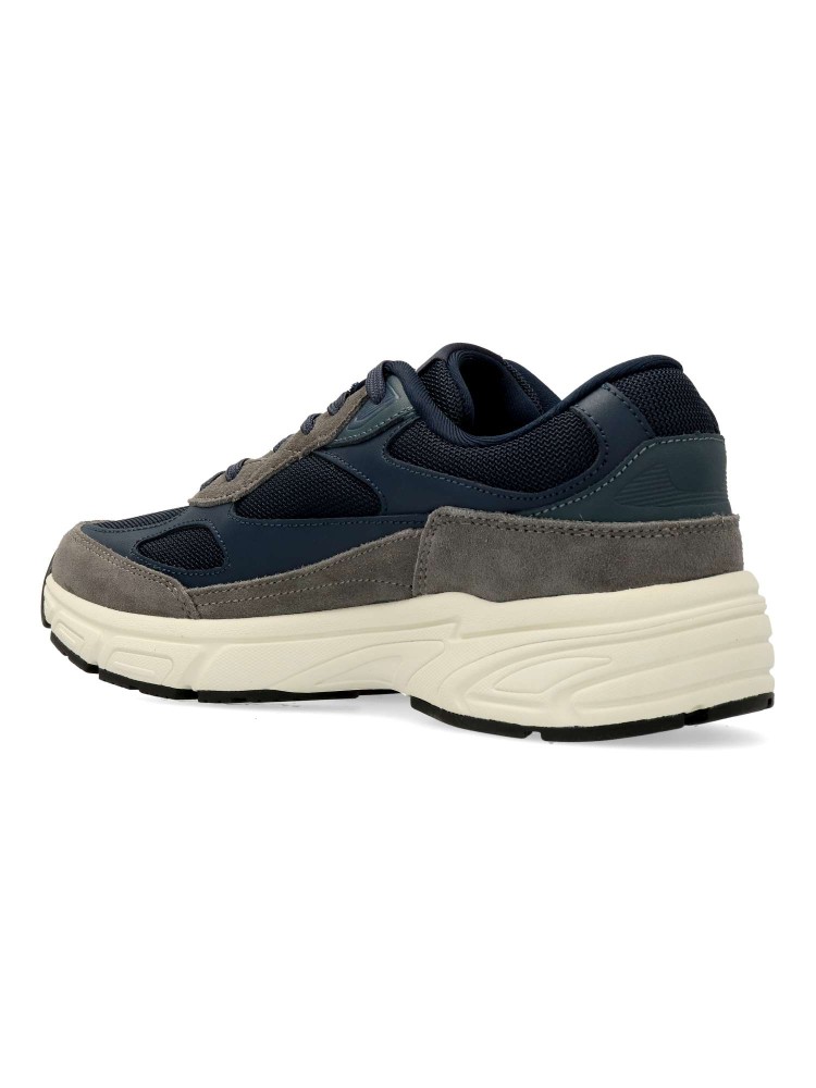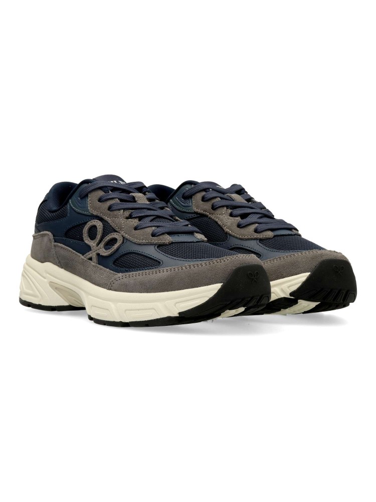 Zapatilla running retro confeccionadas en piel serraje y tejido técnico. Cierre de cordones. Detalle de logo distintivo de la marca en lateral. Suela de goma. Plantilla acolchada. Color marino-gris. Diseño sport, ideal con tu look informal.
