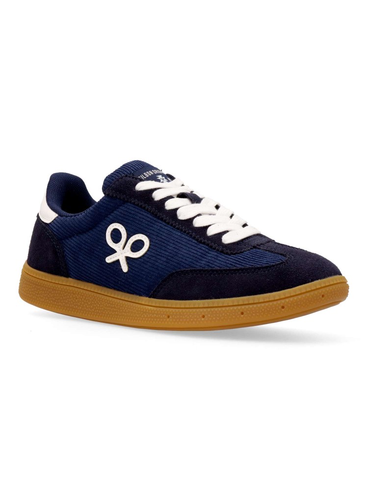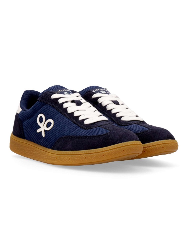 Zapatilla deportiva casual confeccionadas en piel serraje y textil pana. Color azul. Cierre de cordones. Cuenta con suela de goma confortable color caramelo, interior en textil suave y logo de la marca en lateral. Ideal con tus looks urbanos.