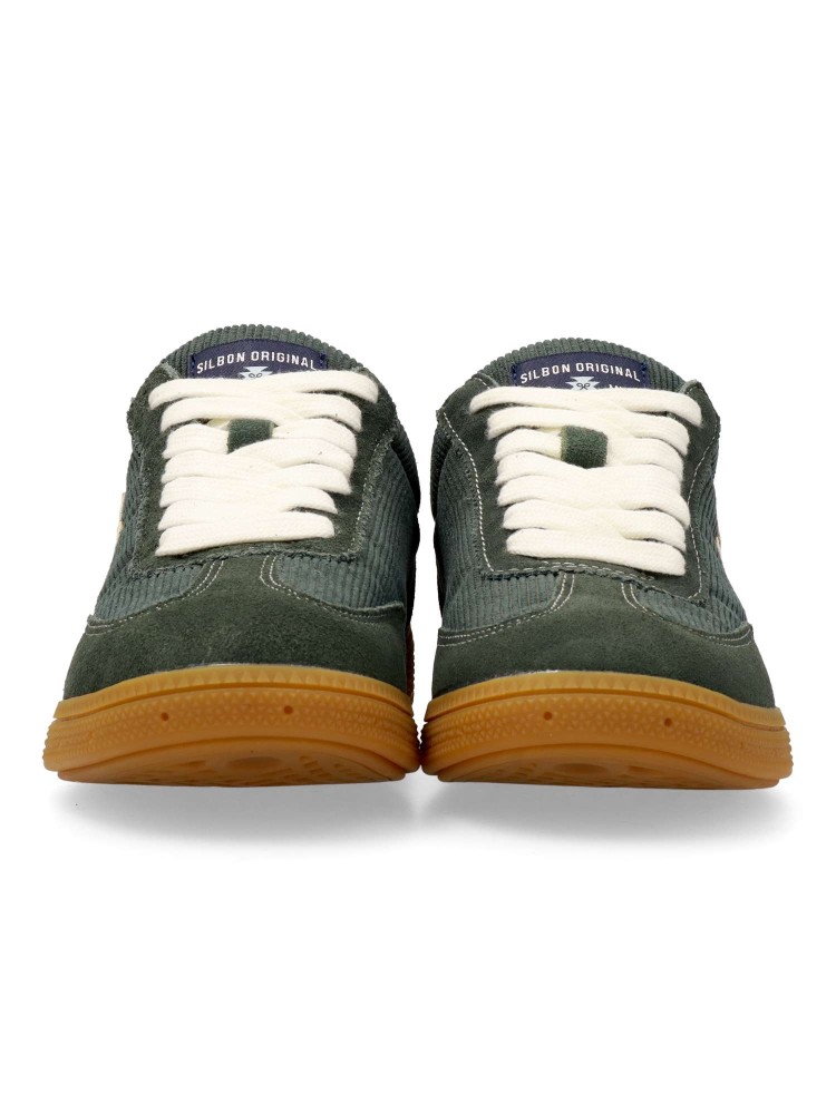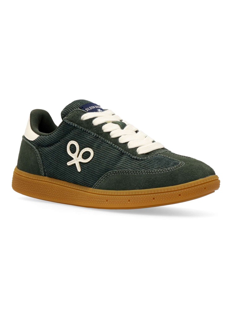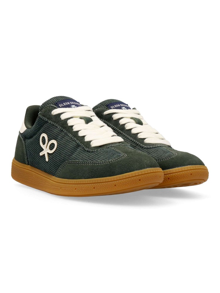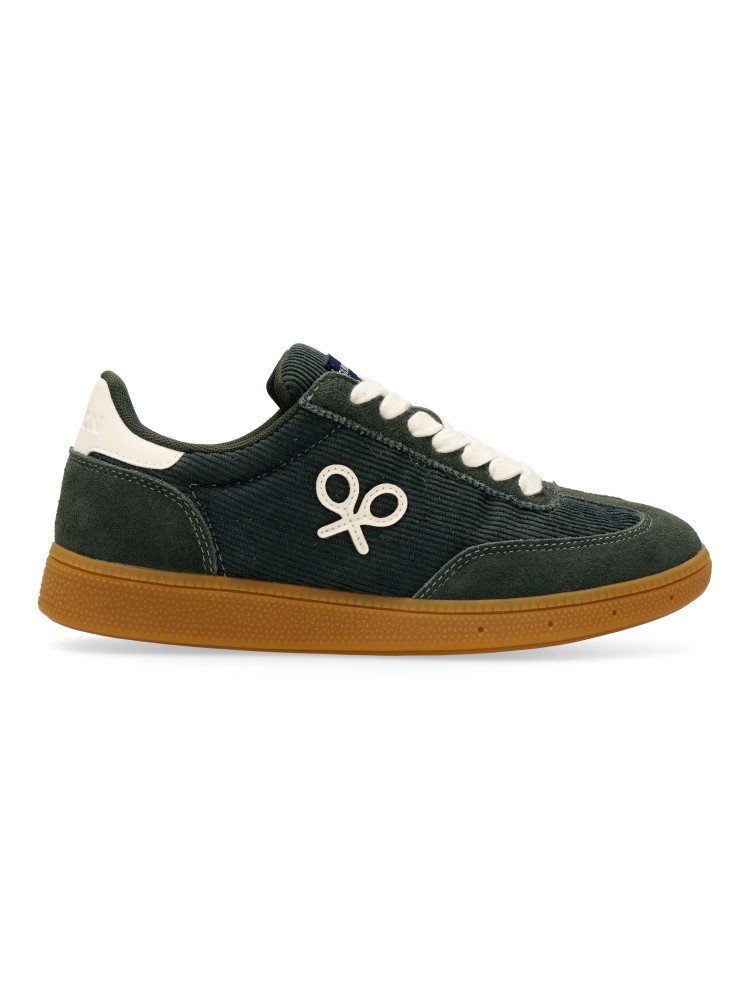 Zapatilla deportiva casual confeccionadas en piel serraje y textil pana. Color verde. Cierre de cordones. Cuenta con suela de goma confortable color caramelo, interior en textil suave y logo de la marca en lateral. Ideal con tus looks urbanos.