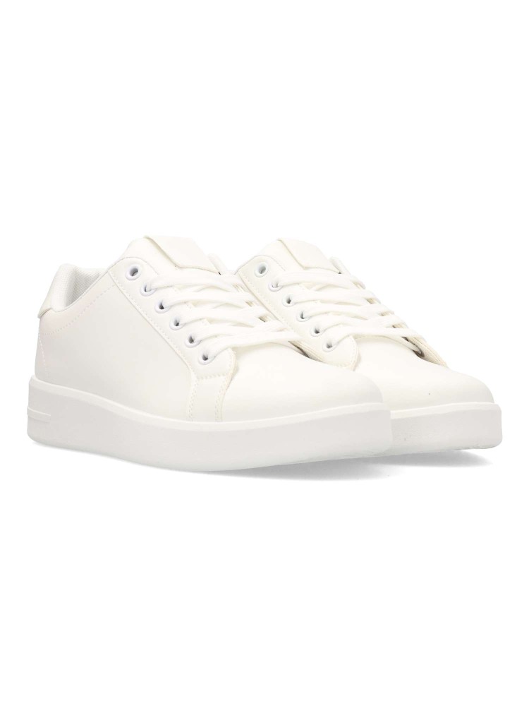 Zapatilla deportiva de hombre, estilo casual. Cierre de cordones. Sneakers cómodo, fabricado en piel sintética, con suela de goma. Plantilla acolchada. Disponible en color blanco. Tenis clásico, ideal para combinar con con todos tus outfits.
