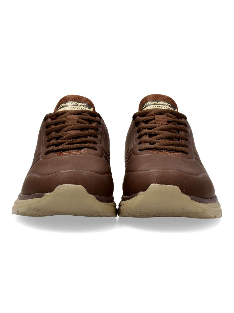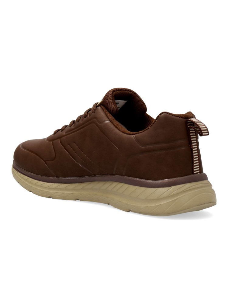 Zapatilla deportiva de hombre, estilo casual. Cierre de cordones. Sneakers ligero y cómodo, fabricados en material sintético, con suela de goma ligera y flexible. Plantilla Comfort Foam. Color marrón. Calzado perfecto para todo tipo de looks.
