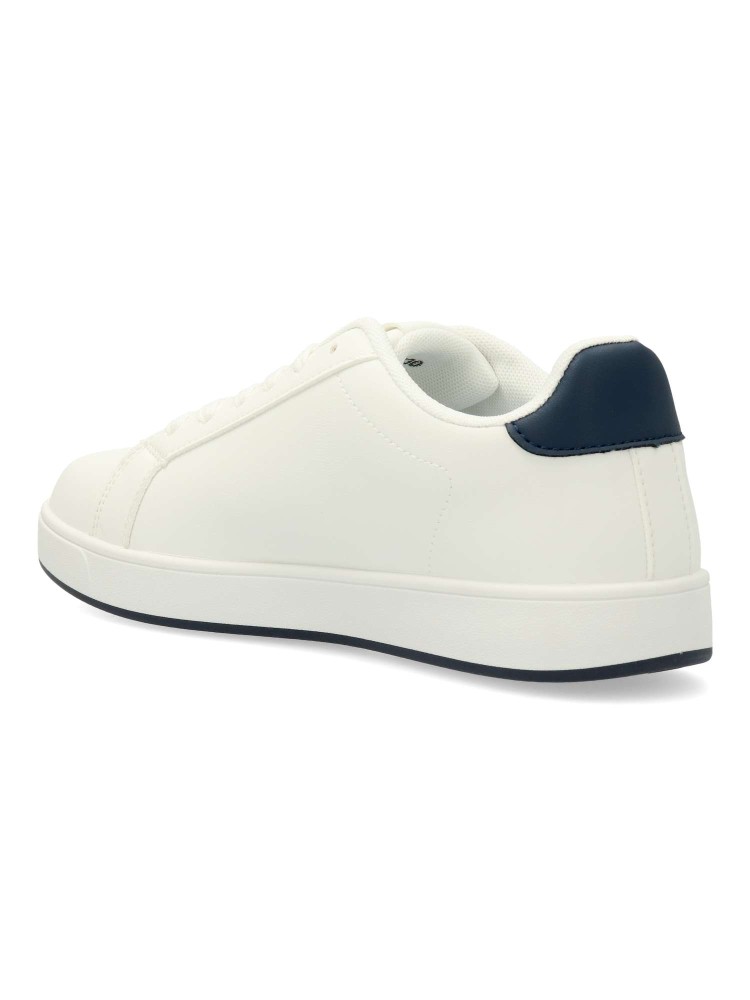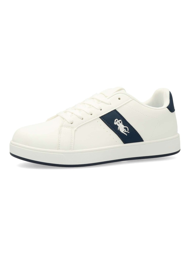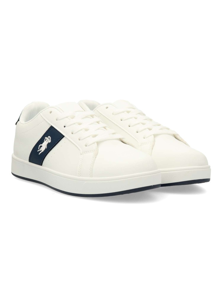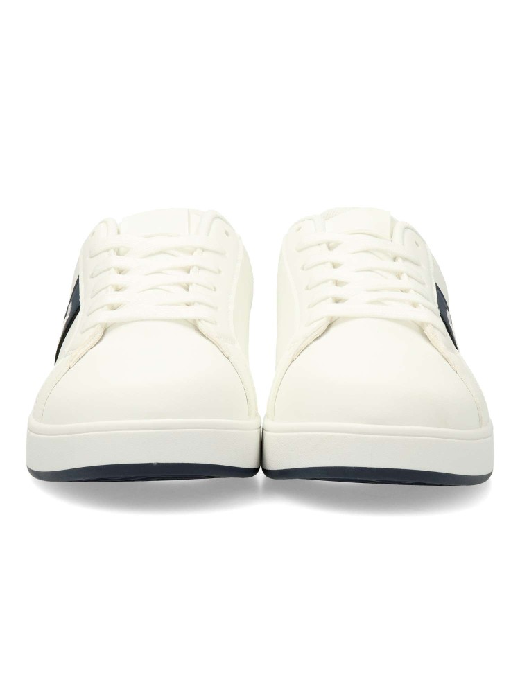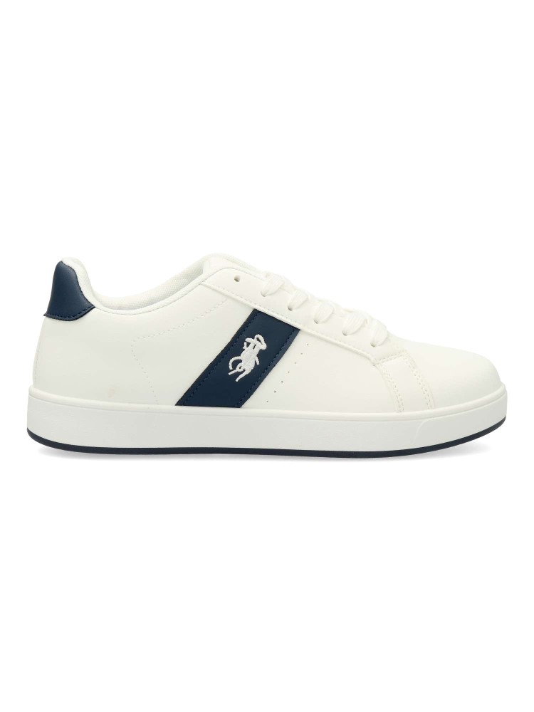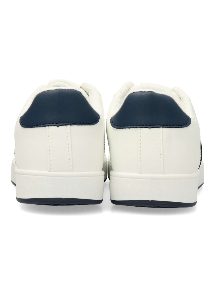 Zapatilla deportiva clásica de hombre, estilo casual. Cierre de cordones. Sneakers fabricado en piel sintética, con suela de goma. Color blanco-azul con detalle bordado. Tenis con diseño casual, ideal con tus looks urbanos.