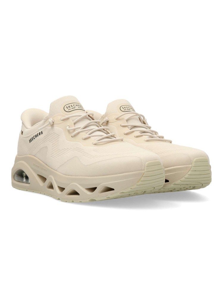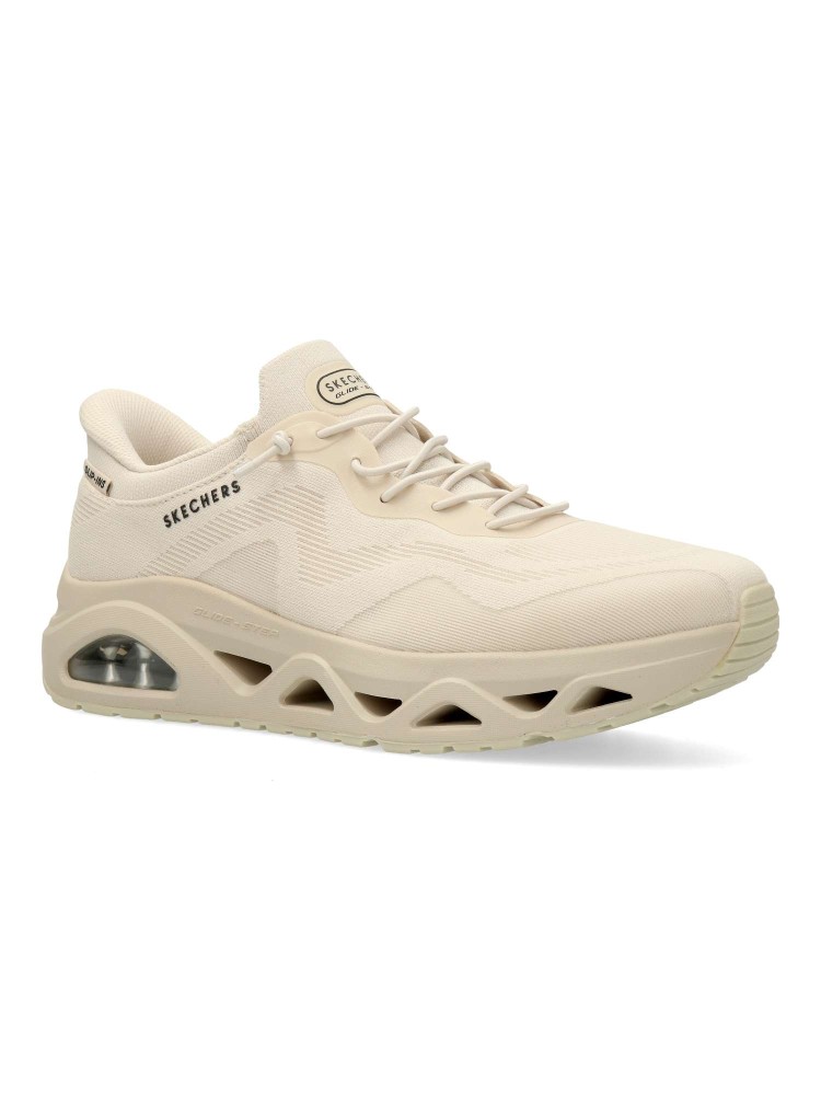 Tecnología Heel Pillow®, estas zapatillas de moda presentan una parte superior de malla con cordón elástico, una plantilla acolchada Air-Cooled Memory Foam® y nuestra entresuela geométrica Glide-Step®, combinada con una cámara de aire Skech-Air® visible.