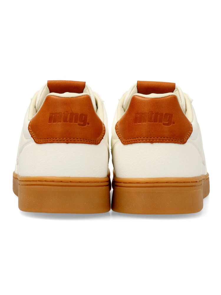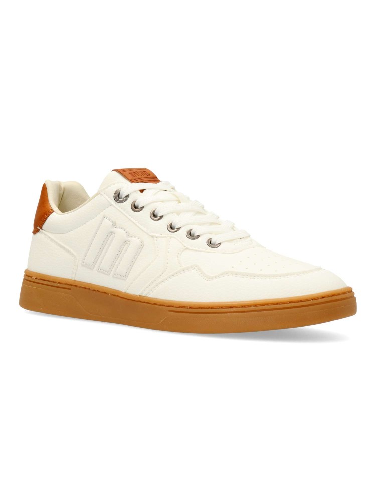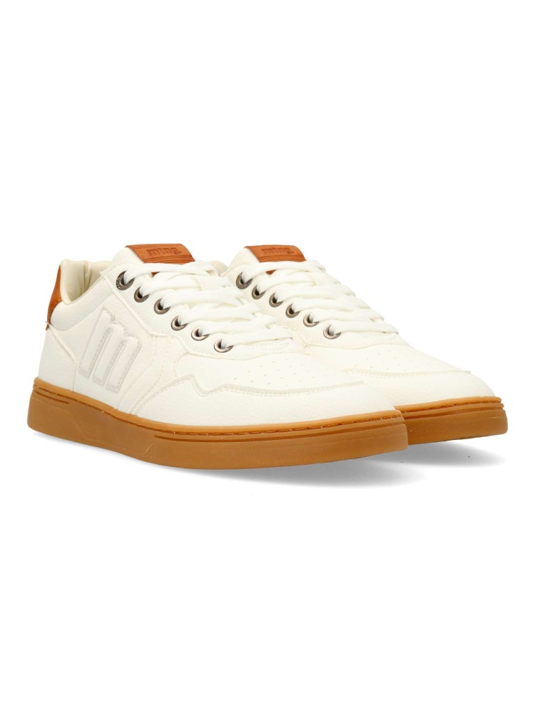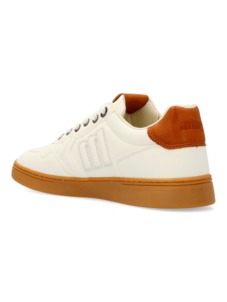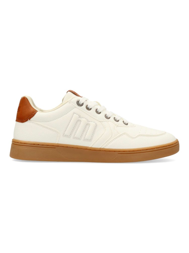 Zapatillas para hombre de Mustang, color blanco. Sneakers cómodo, fabricado en piel sintética, con suela de goma color caramelo. Opción versátil y cómoda para el día a día, perfecta para quienes buscan un calzado casual con un toque moderno y funcional.
