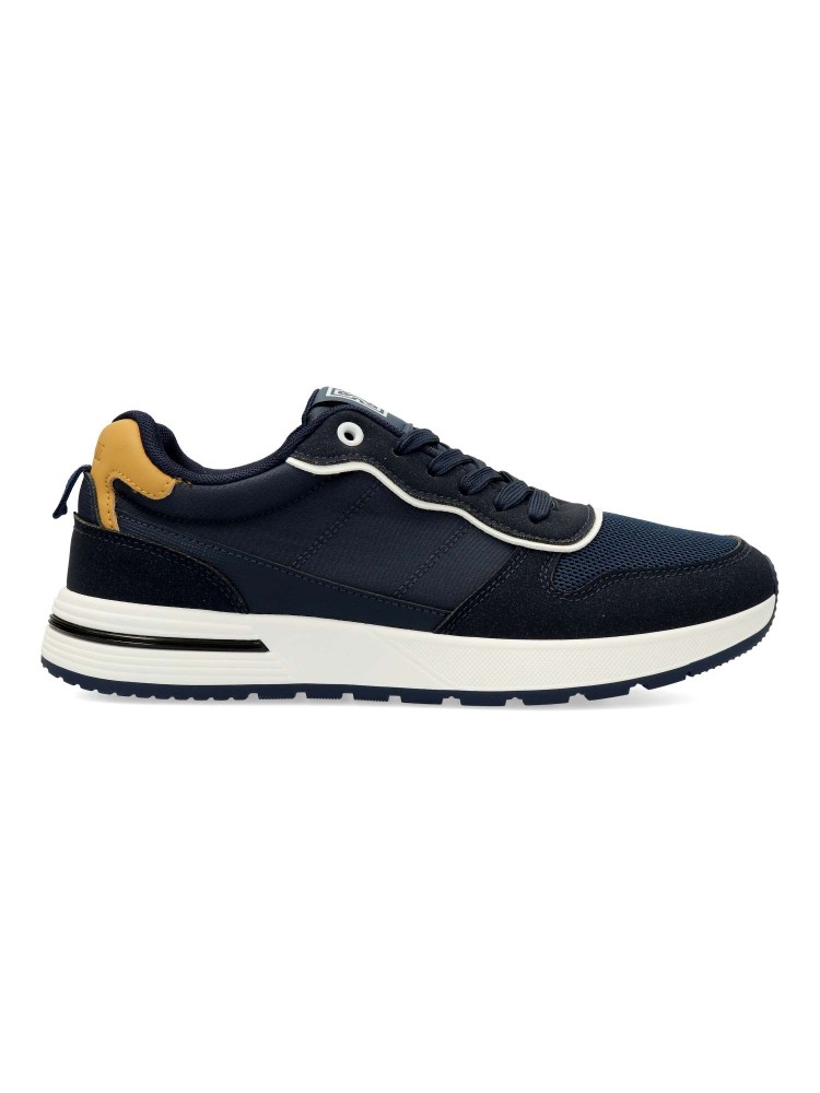 Zapatilla deportiva de hombre, estilo casual. Cierre de cordones. Sneakers fabricado en piel sintética y textil, con suela de goma flexible. Color marino. Plantilla acolchada y extraíble. Diseño casual vintage, ideal con tus looks urbanos de temporada.