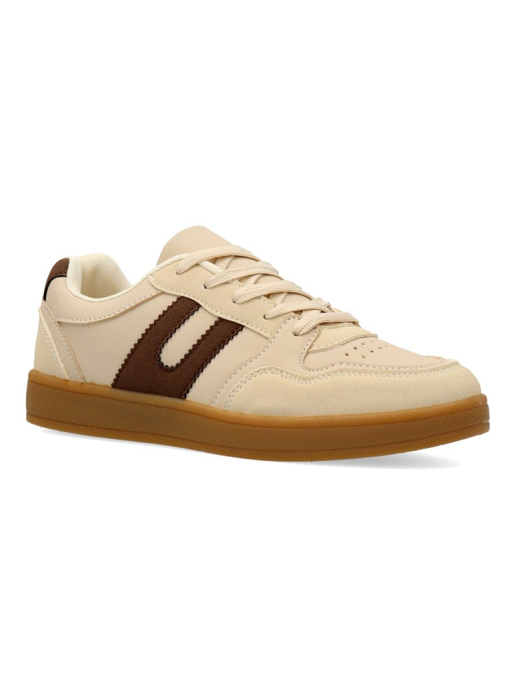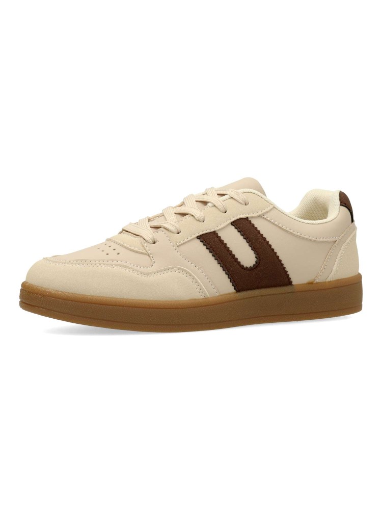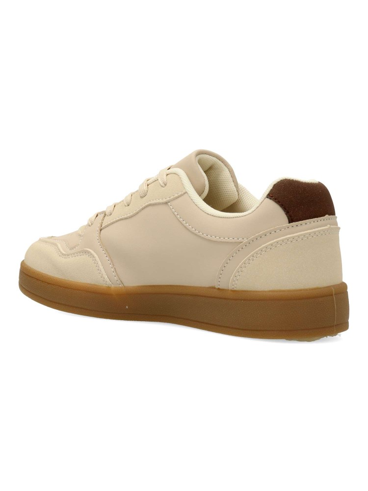 Zapatilla deportiva estilo casual. Cierre de cordones. Sneakers cómodo, fabricado en piel sintética, con suela de goma. Plantilla acolchada y extraible. Color beige. Zapatilla con diseño versátil, ideal para combinar con tus looks de temporada.