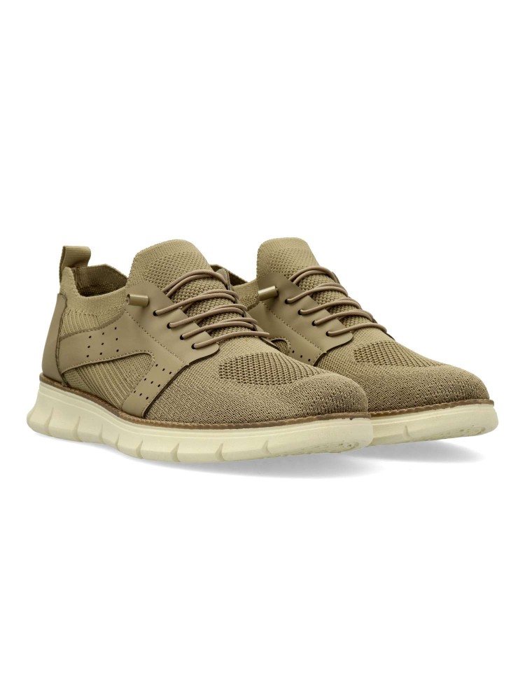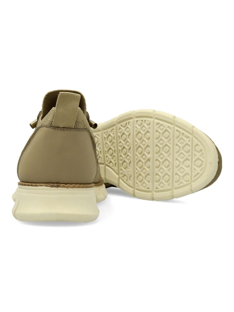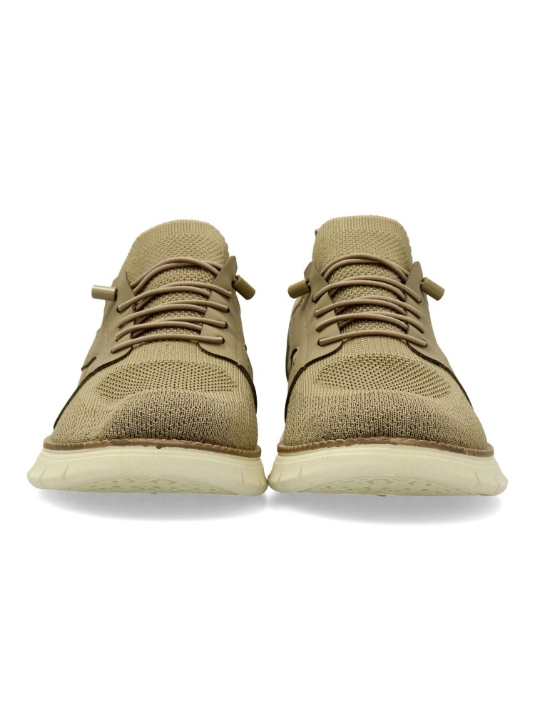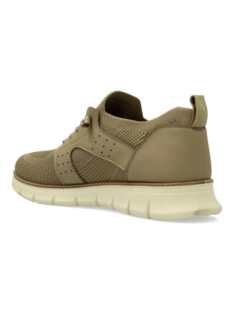 Zapatilla deportiva de hombre, fabricada en textil elástico y napa sintética. Cordones elásticos decorativos. Suela de goma flexible y ligera. Plantilla acolchada y extraíble. Disponible en color kaki. Diseño casual sport, ideal con tus outfits urbanos.