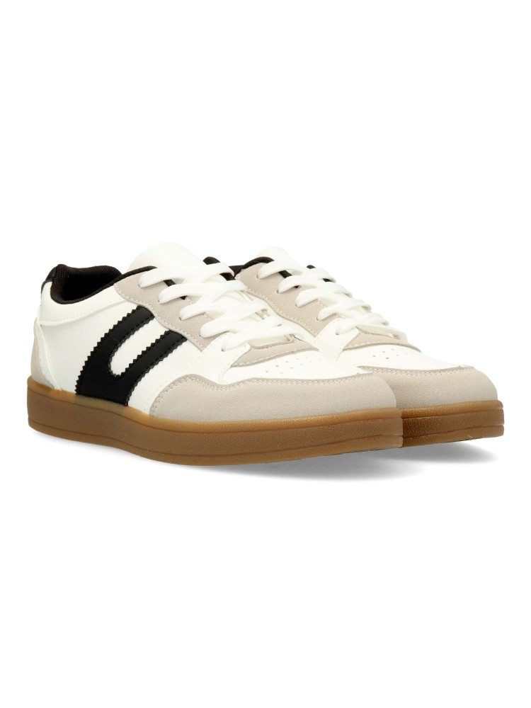 Zapatilla deportiva estilo casual. Cierre de cordones. Sneakers cómodo, fabricado en piel sintética, con suela de goma. Plantilla acolchada y extraible. Color blanco. Zapatilla con diseño versátil, ideal para combinar con tus looks de temporada.