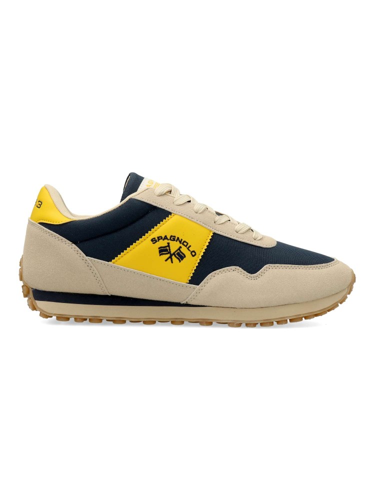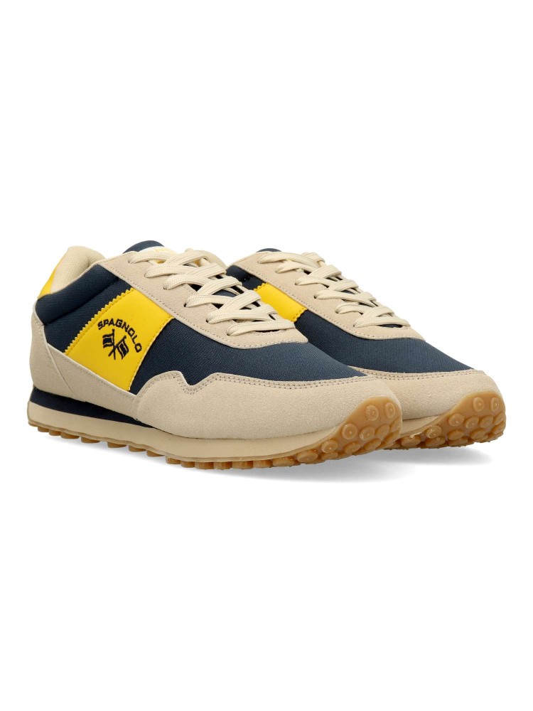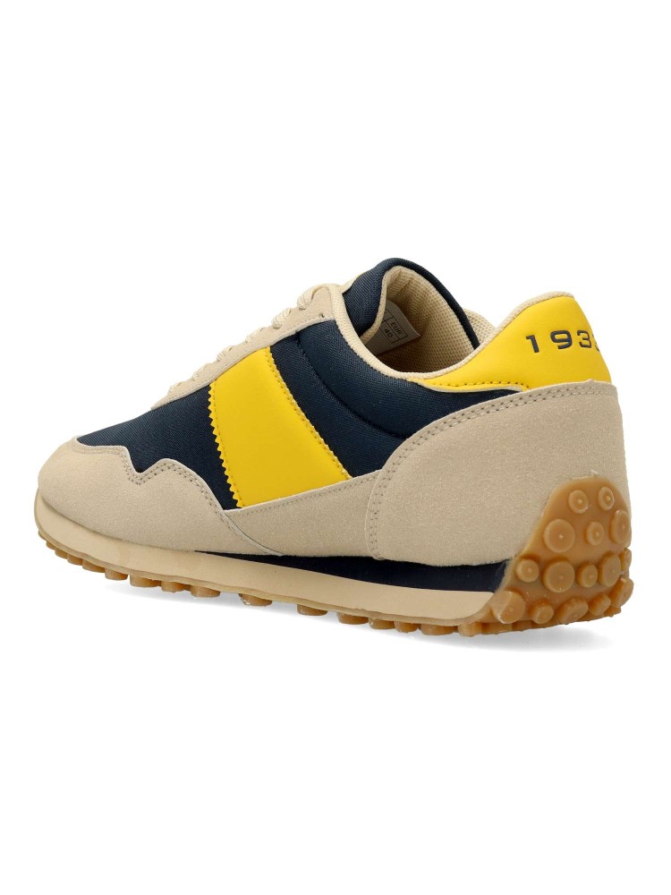 Zapatilla deportiva de hombre, estilo casual. Cierre de cordones. Sneakers cómodo, fabricado en piel sintética y textil, mediasuela EVA y suela de goma. Plantilla acolchada y extraíble. Color marino-amarillo. Zapatilla sport, ideal con tu estilo urbano.