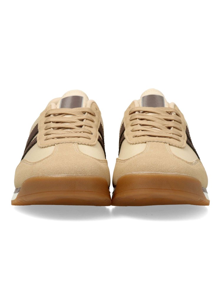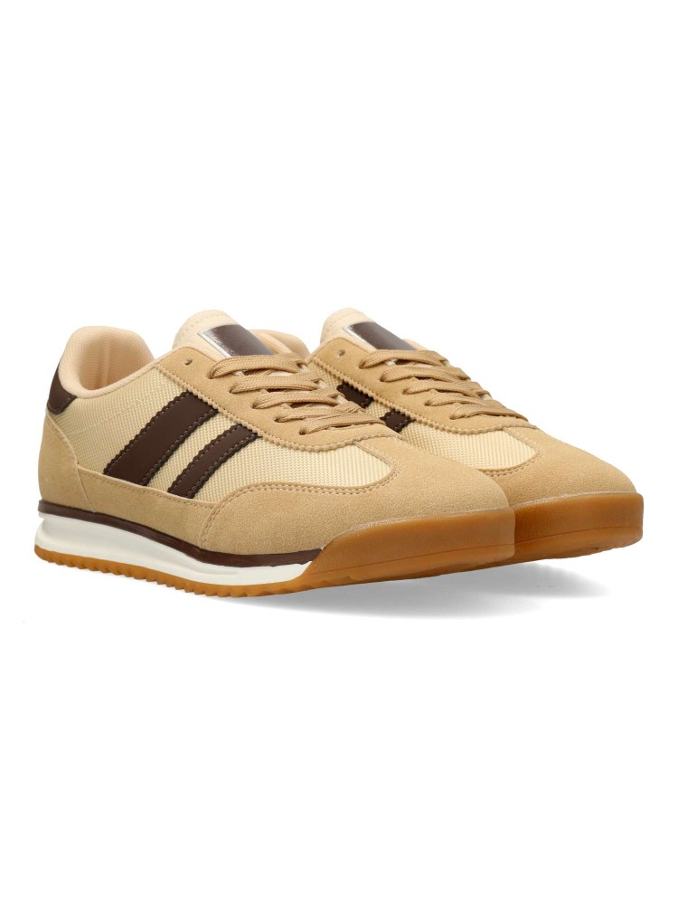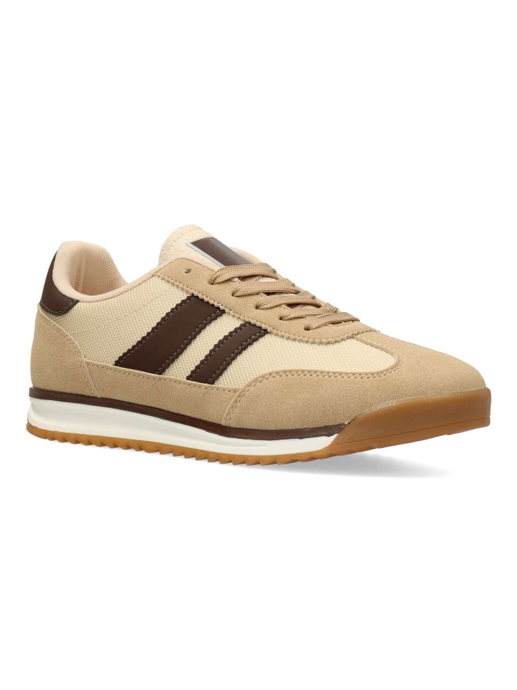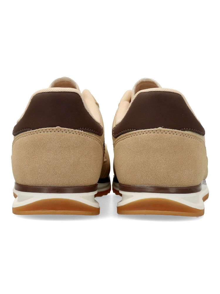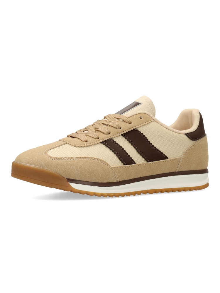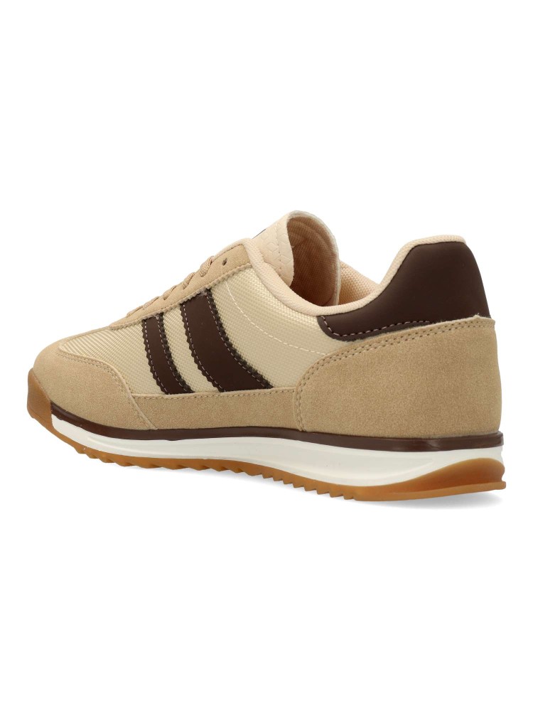 Zapatilla deportiva de hombre, estilo casual. Cierre de cordones. Sneakers fabricado en piel sintética y textil, con suela de goma dentada. Color kaki-marrón. Plantilla acolchada y extraíble. Diseño casual retro, ideal con tus looks urbanos.