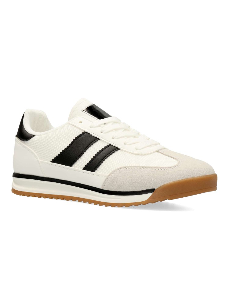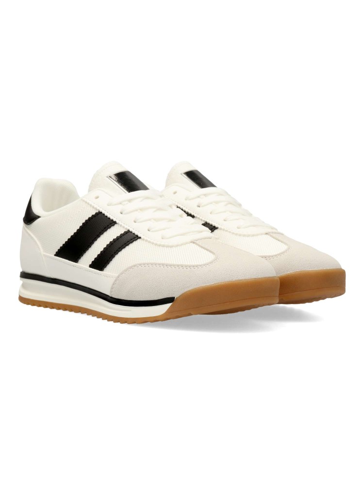 Zapatilla deportiva de hombre, estilo casual. Cierre de cordones. Sneakers fabricado en piel sintética y textil, con suela de goma dentada. Color blanco-negro. Plantilla acolchada y extraíble. Diseño casual retro, ideal con tus looks urbanos.