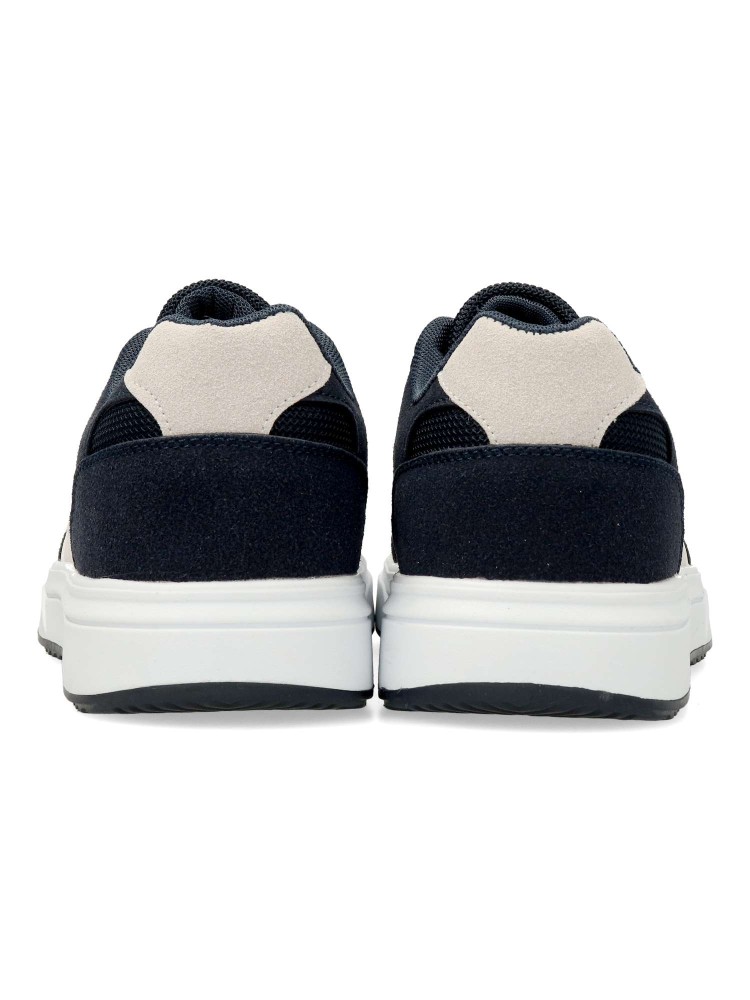Zapatilla deportiva de hombre, estilo casual. Cierre de cordones. Sneakers fabricado en material sintético y textil, con suela de goma. Plantilla acolchada y extraíble. Color marino. Diseño sport casual retro, ideal con tus outfits urbanos.