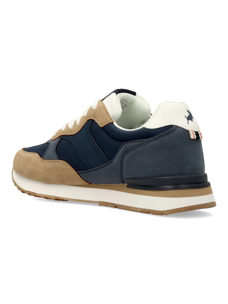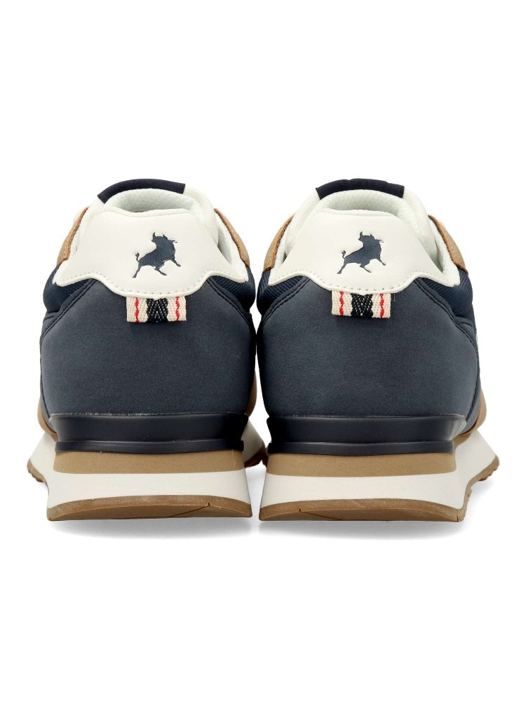 Deportiva de hombre, estilo casual. Sneakers cómodo, fabricado en piel sintética y textil, con mediasuela EVA y suela de goma antideslizante. Plantilla acolchada Shock Absortion. Color marino. Diseño casual retro, ideal para combinar con tu outfit urbano.