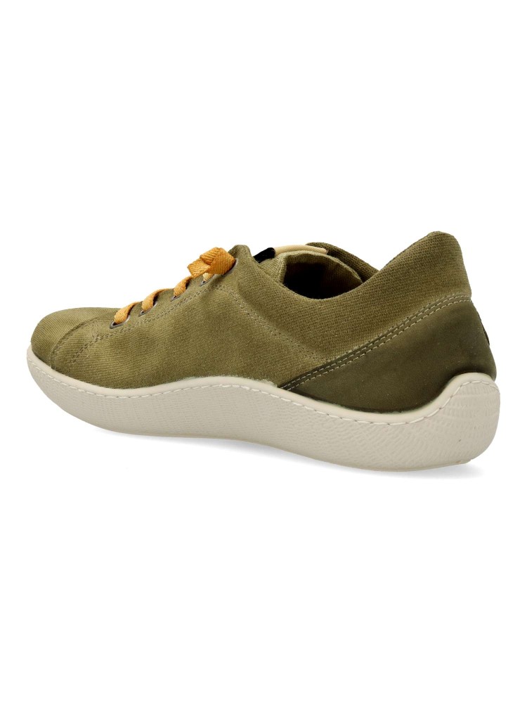Deportiva de hombre estilo casual . Ajuste con cordón elástico. Fabricado con tejido 100% algodón orgánico. Suela Ecofriendly, hecha con goma que contiene un alto porcentaje de caucho natural. Plantilla acolchada y extraíble. Hecho en España.