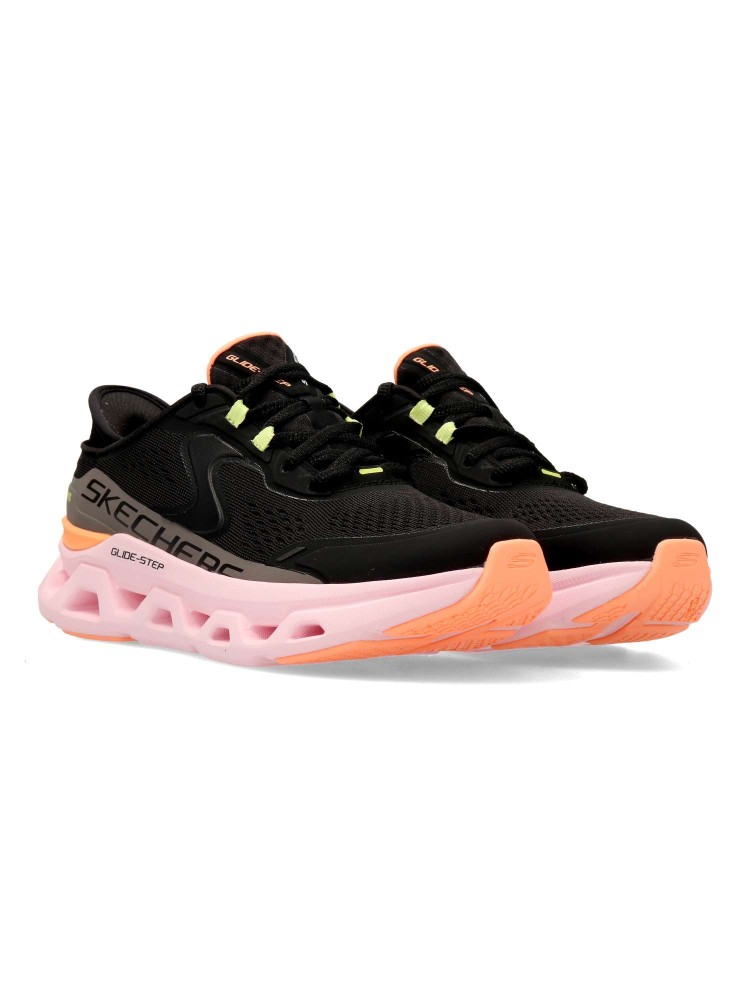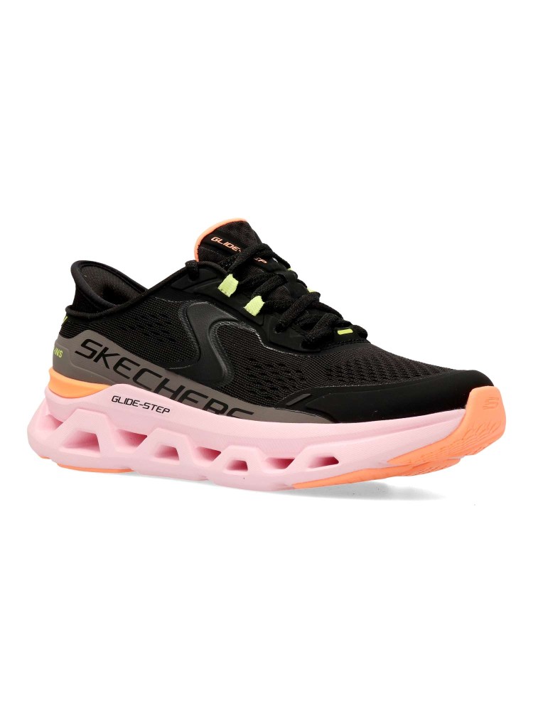 Modelo deportivo y vegano, diseñado con el sistema exclusivo Heel Pillow™. Parte superior de malla técnica Stretch Fit®, cómoda plantilla Skechers Air-Cooled Memory Foam® y una media suela geométrica Glide-Step® con amortiguación.