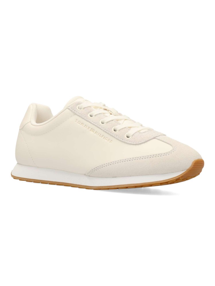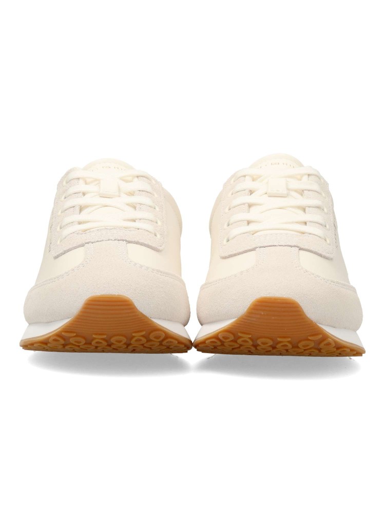 Zapatilla deportiva de mujer, estilo casual. Cierre de cordones. Sneakers cómodo, fabricado en piel, con suela de goma flexible y antideslizante. Color crudo. Diseño versátil y elegante que no te puede faltar, para destacar con tu outfit urbano.