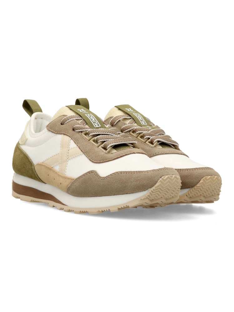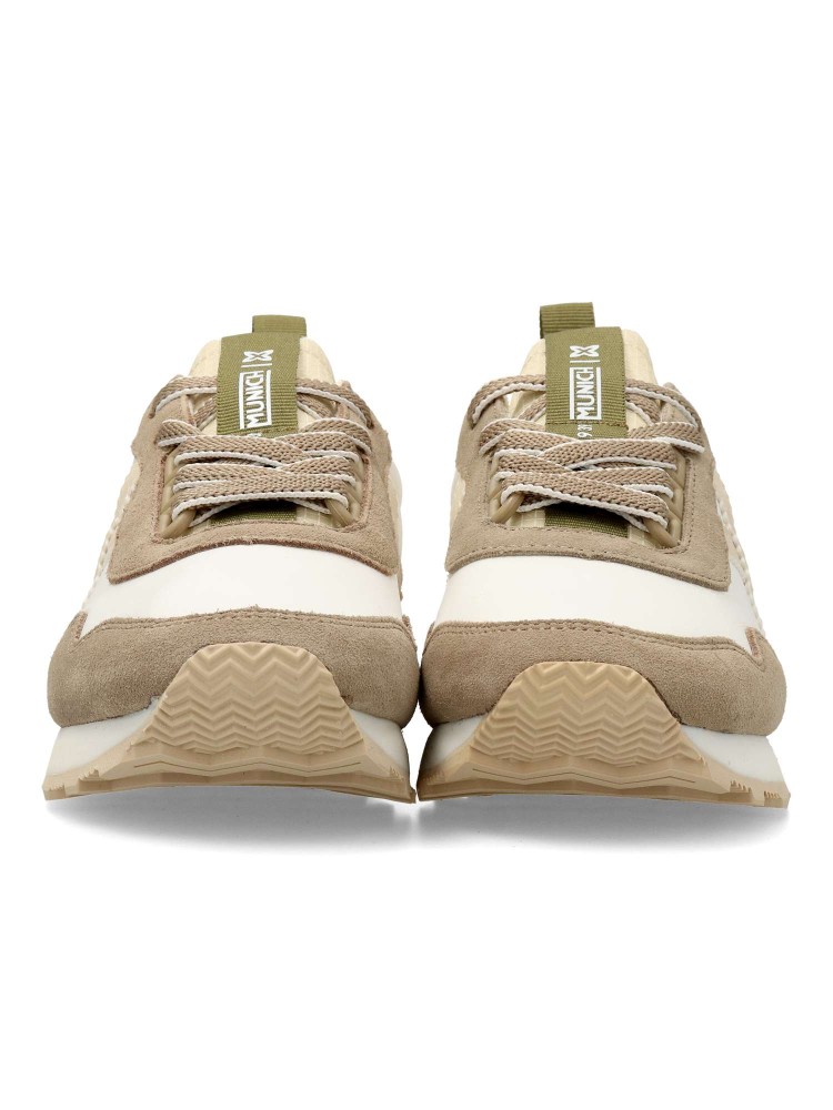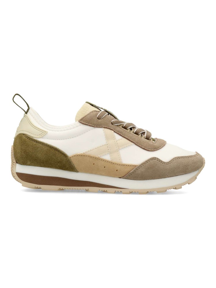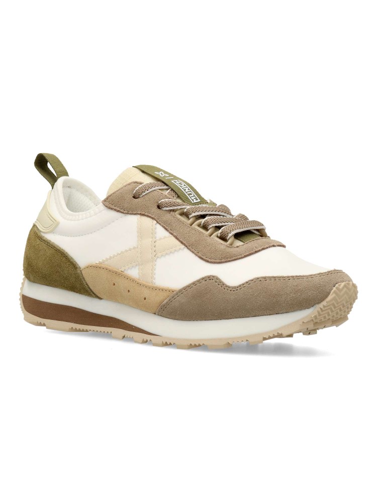 Zapatilla deportiva de mujer, estilo casual. Cierre de cordones. Sneakers cómodos, fabricados en piel y textil, con suela de goma ligera. Plantilla acolchada y extraíble. Color blanco-taupe. Ideal para combinar con tu estilo urbano. UM WMN 33.