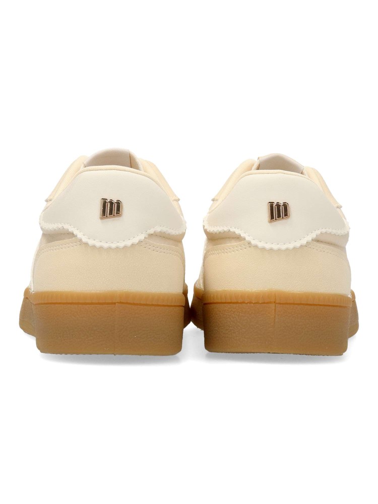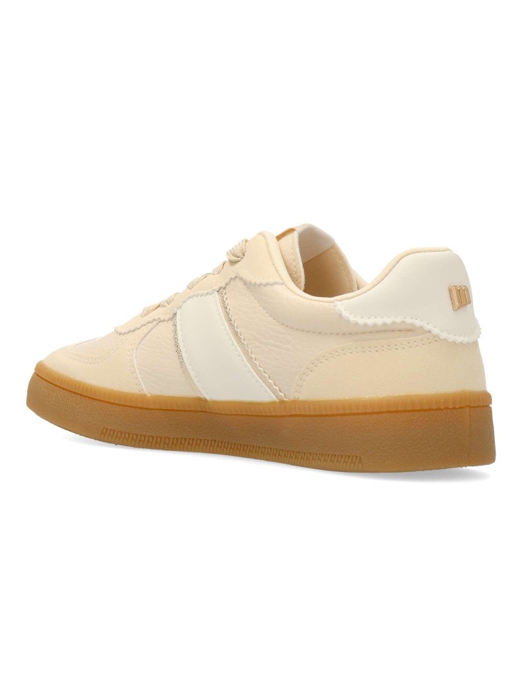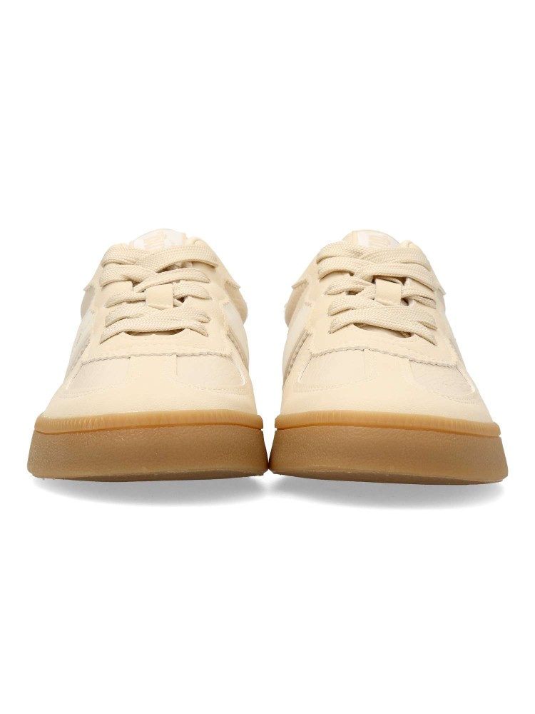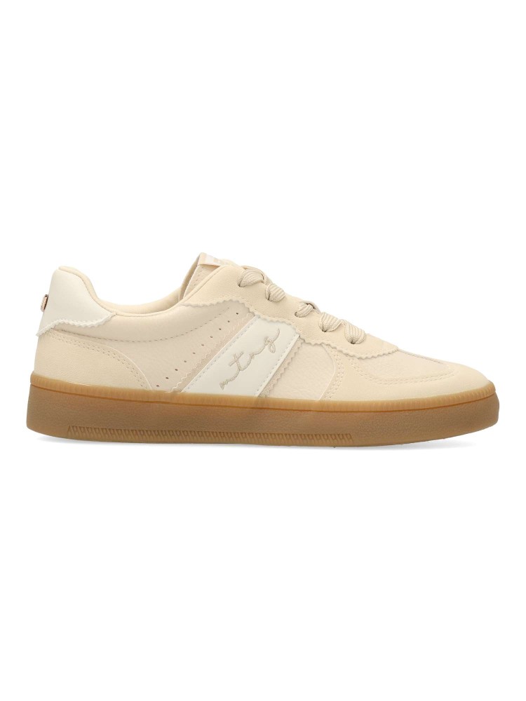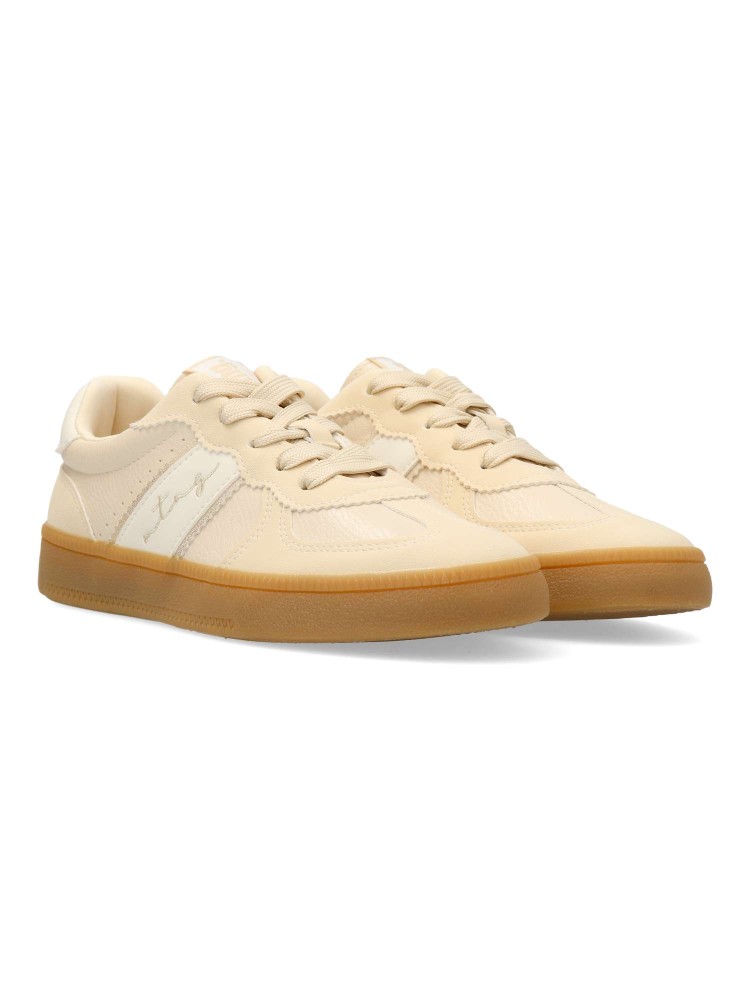 Zapatillas deportivas color arena, con diseño casual. Este calzado combina paneles de texturas suaves y un toque retro con su suela de goma en tono caramelo, ofreciendo estilo y comodidad. Plantilla acolchada. Ideal para complementar looks relajados.