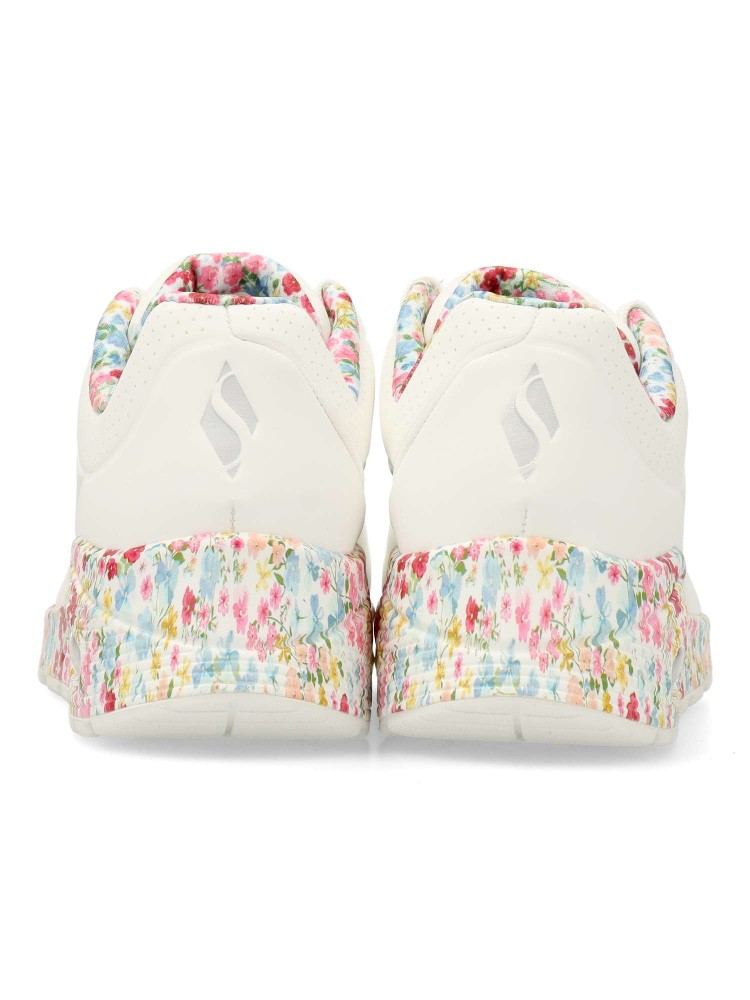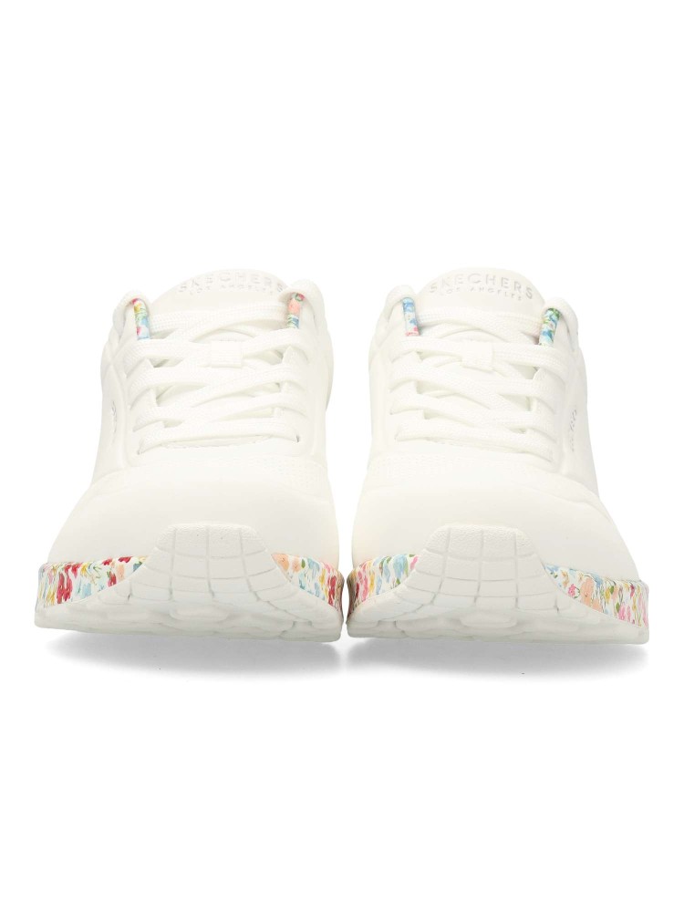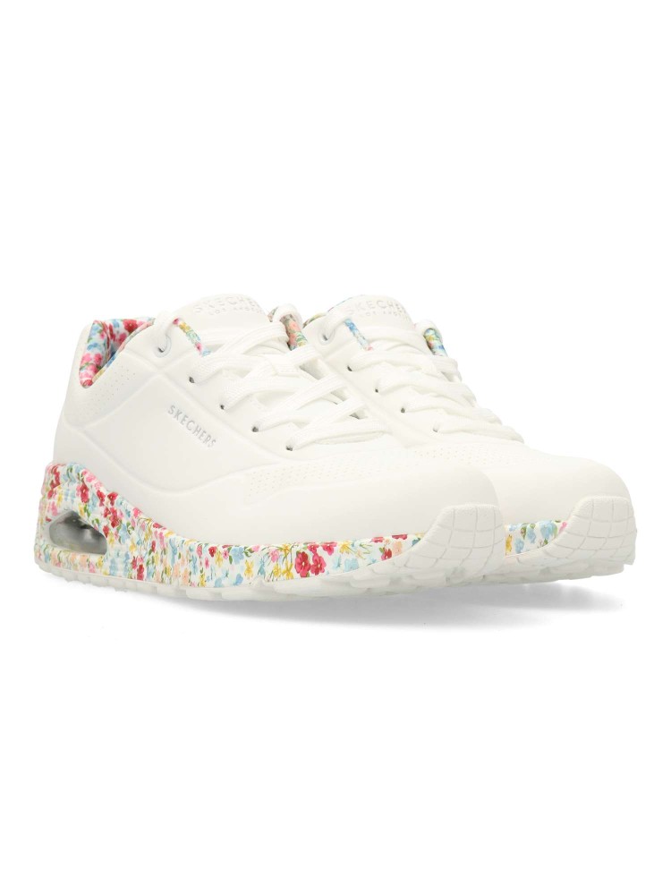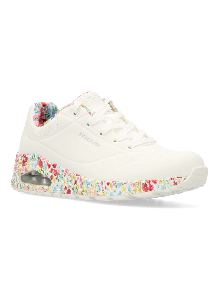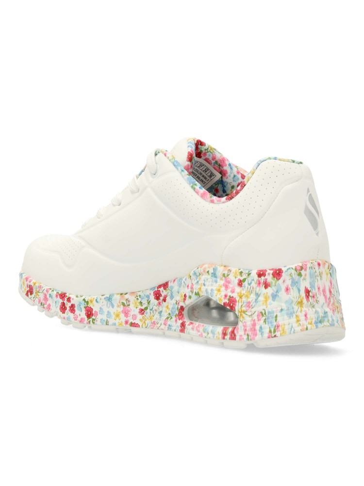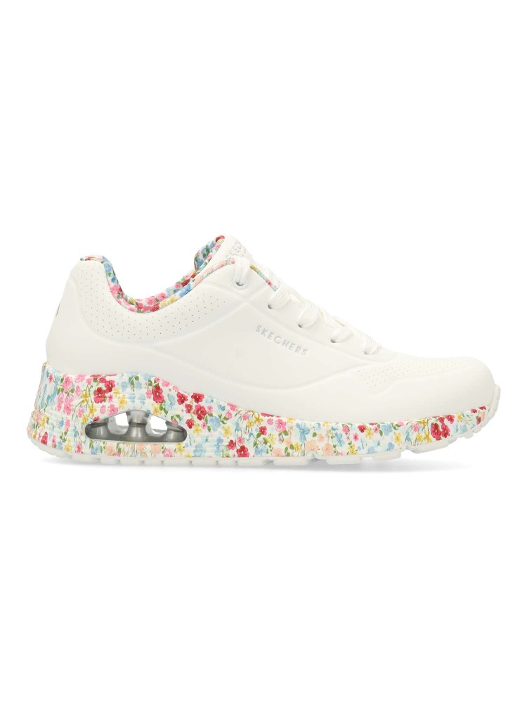 Zapatilla fashion de cordones, con estampado de la firma del artista con diseño de corazón, empeine de cuero sintético con plantilla de Air-Cooled Memory Foam® de Skechers y una plataforma en cuña con media suela Skech-Air® con cámara de aire visible.