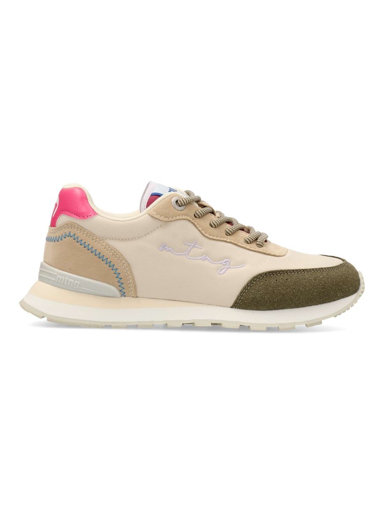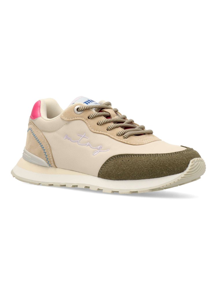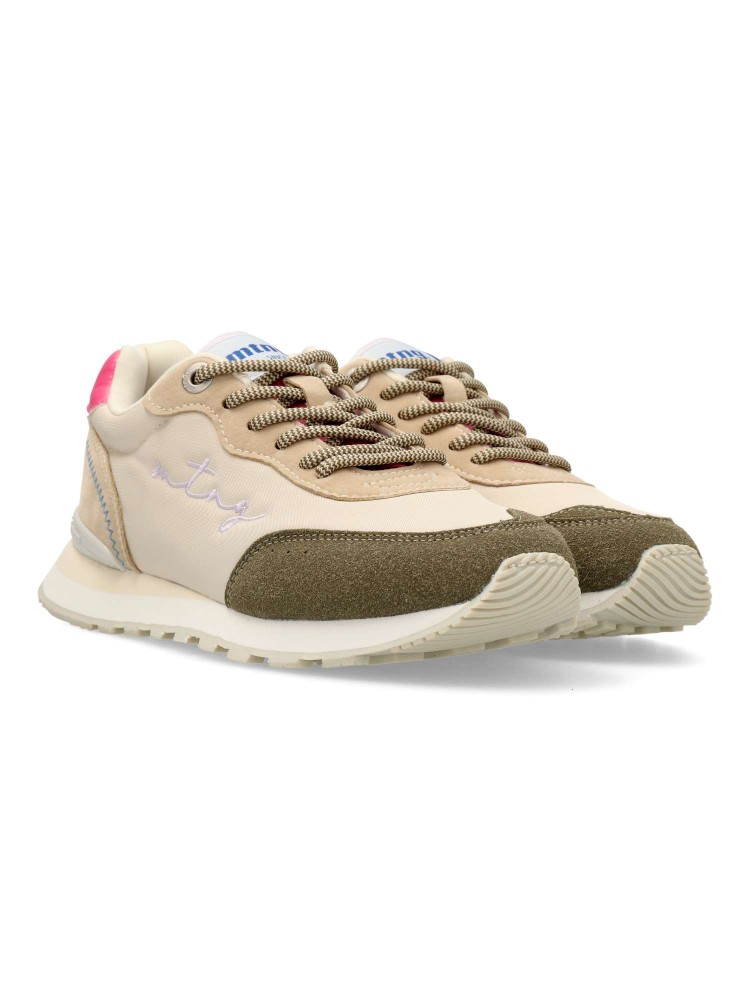 Zapatilla deportiva Joggo Mustang para mujer. Cierre de cordones. Sneakers cómodo, fabricado en piel sintética y textil, con suela de goma. Plantilla acolchada. Color gris-kaki. Combinarán a la perfección con tus looks más comfy.
