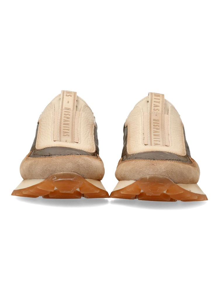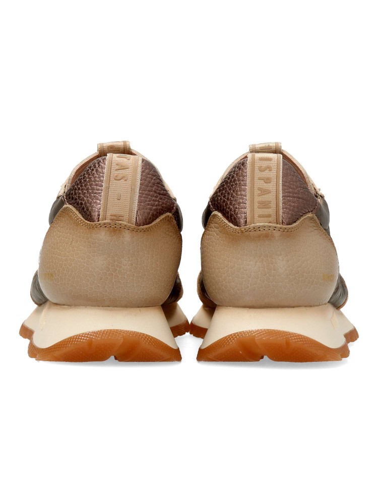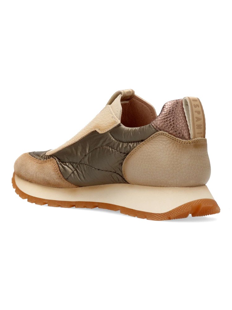 Deportiva con ajuste de elástico al empeine y una original combinación de materiales en piel y textil acolchado. Color taupe-beige. Plantilla acolchada y extraíble. Incorpora la tecnología TRIFLOW, amortigua cada paso gracias a su triple almohadillado.