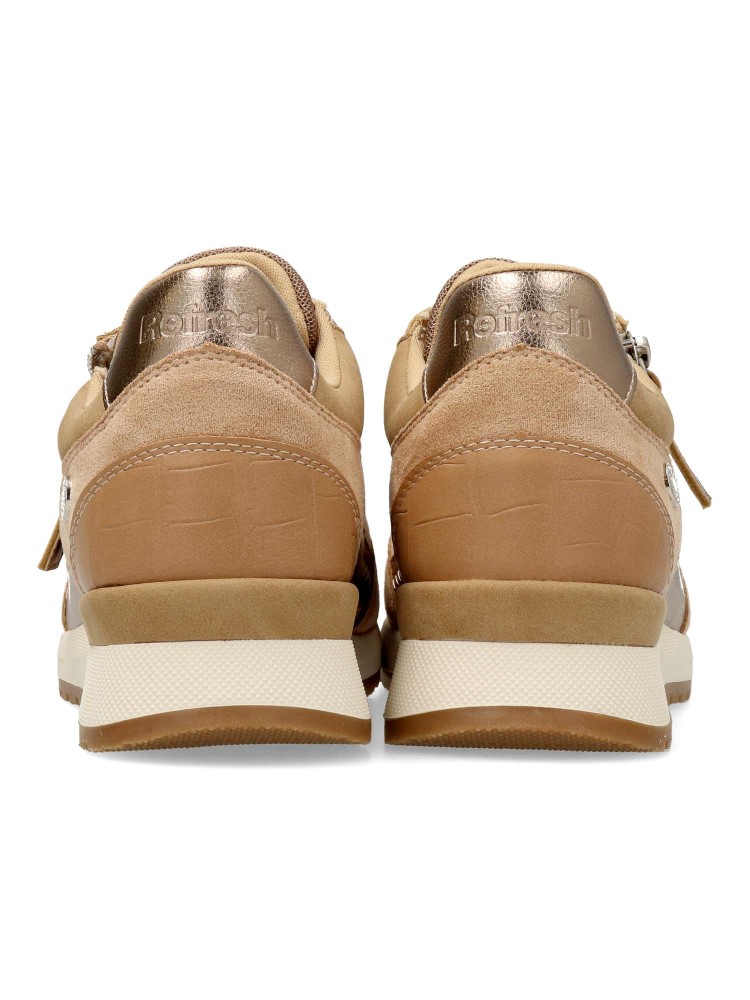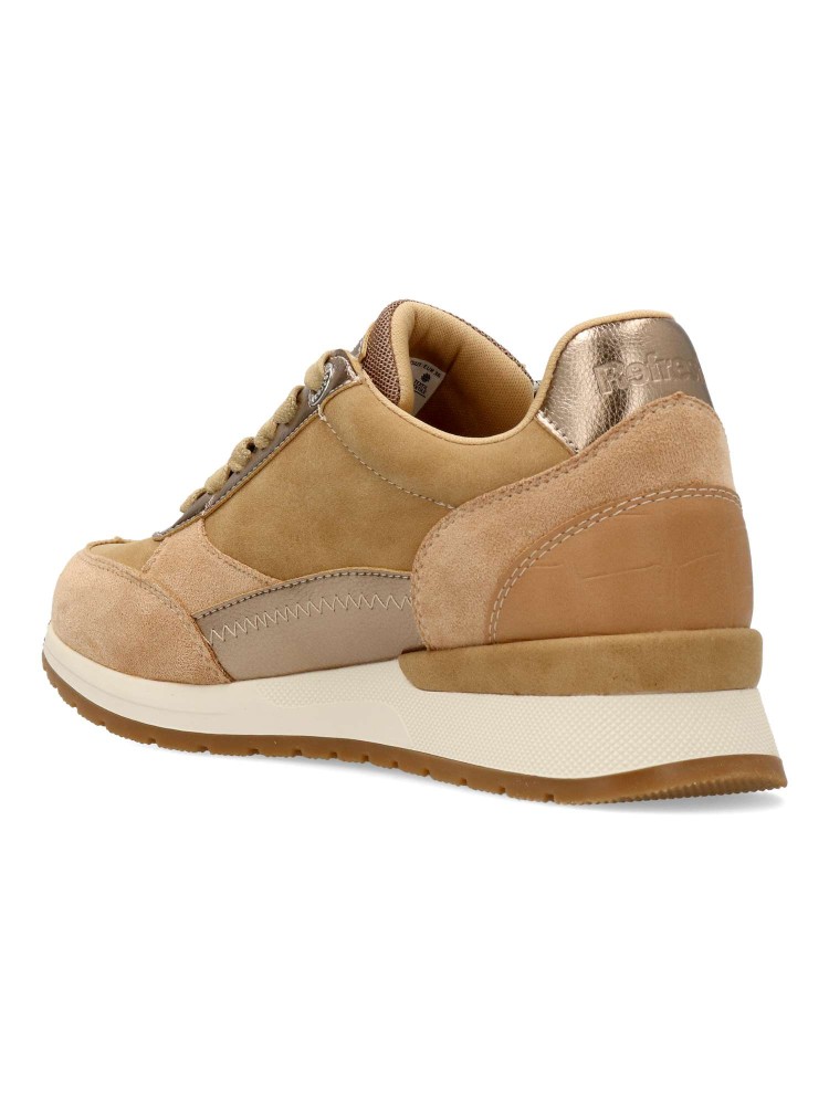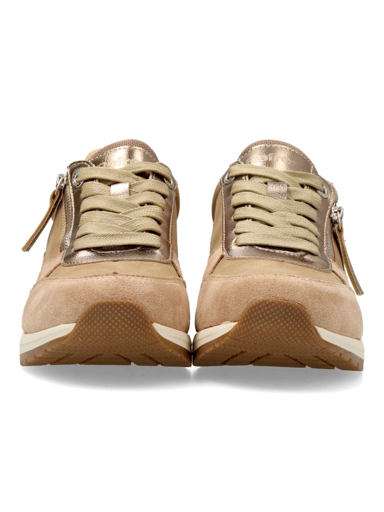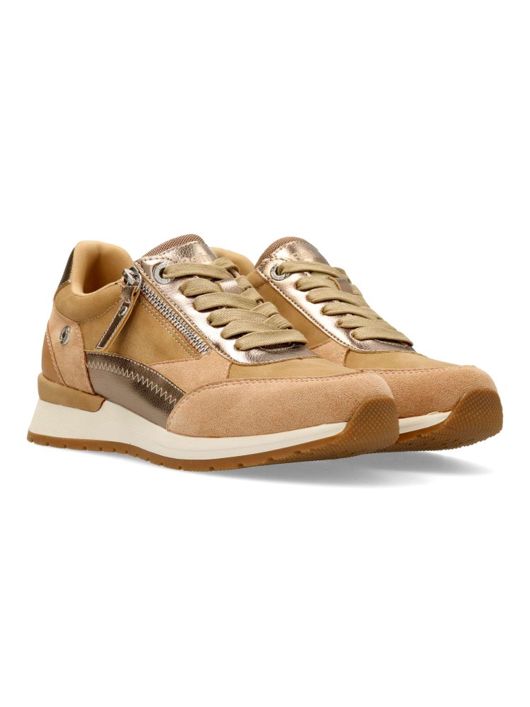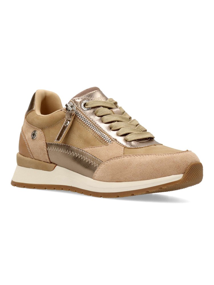 Zapatilla deportiva de mujer, estilo casual. Cierre de cremallera lateral y cordones. Fabricado en piel sintética y antelina. Suela de goma antideslizante. Plantilla acolchada y extraíble. Diseño cómodo y versátil. Certificado vegano.