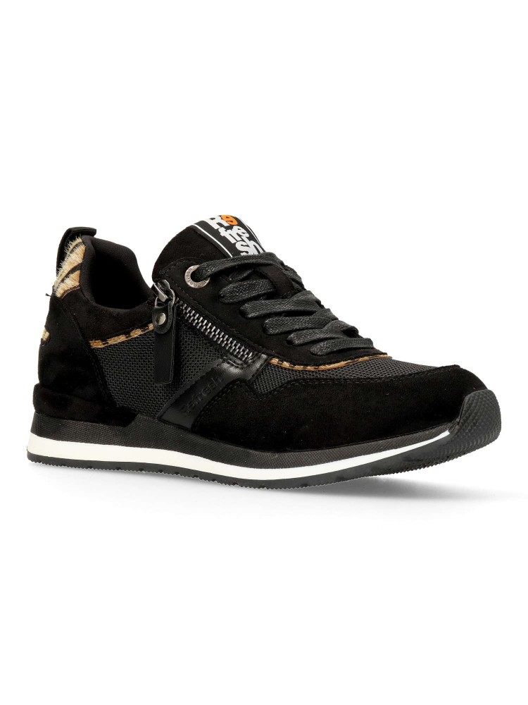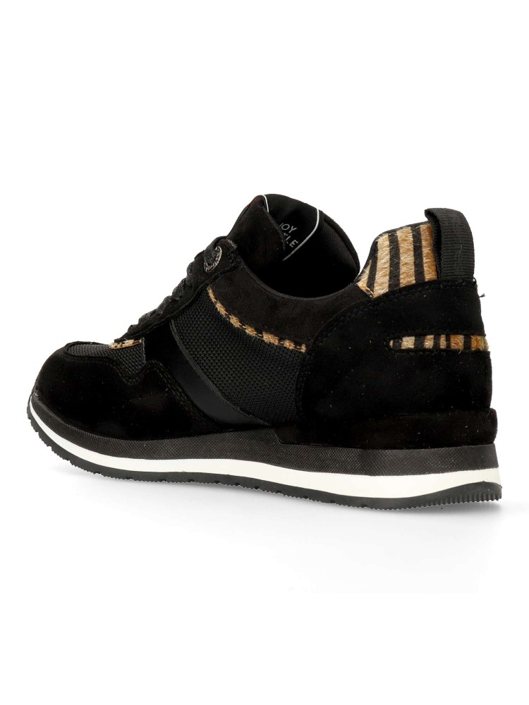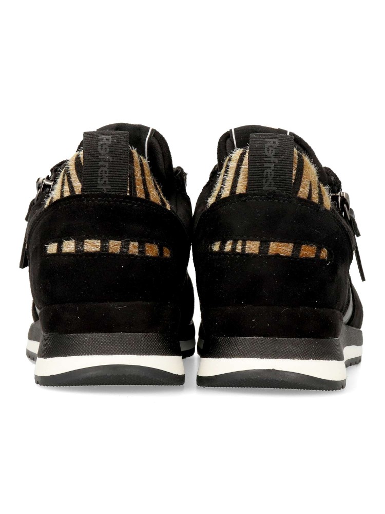 Zapatilla deportiva de mujer, estilo casual. Cierre de cremallera lateral y cordones. Fabricado en material que imita la piel y textil. Detalle print animal. Suela de goma antideslizante. Plantilla acolchada y extraíble. Certificado vegano.