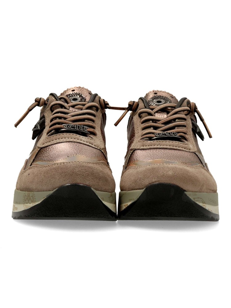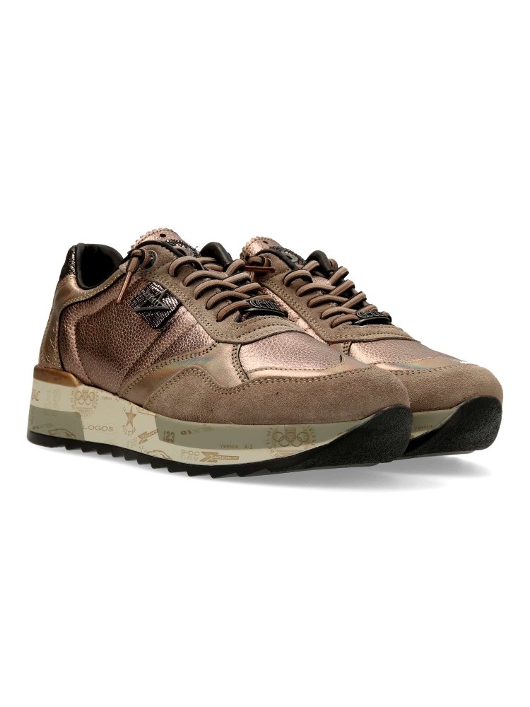 Zapato casual de mujer, con aspecto vintage-retro. Sneakers cómodo fabricado en piel natural. Cierre de cordones elásticos. Plantilla acolchada extraible. Suela de goma gruesa. Color acero. Estilo urbano. Hecho en España.
