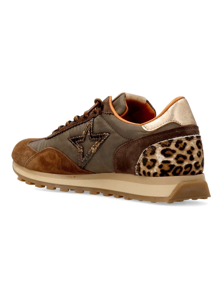 Deportivo casual de mujer con aspecto vintage. Sneakers cómodo fabricado en piel natural y textil. Cierre de cordones elásticos. Plantilla acolchada extraible. Suela de goma. Diseño urbano para combinar con tus mejores looks. Hecho en España.