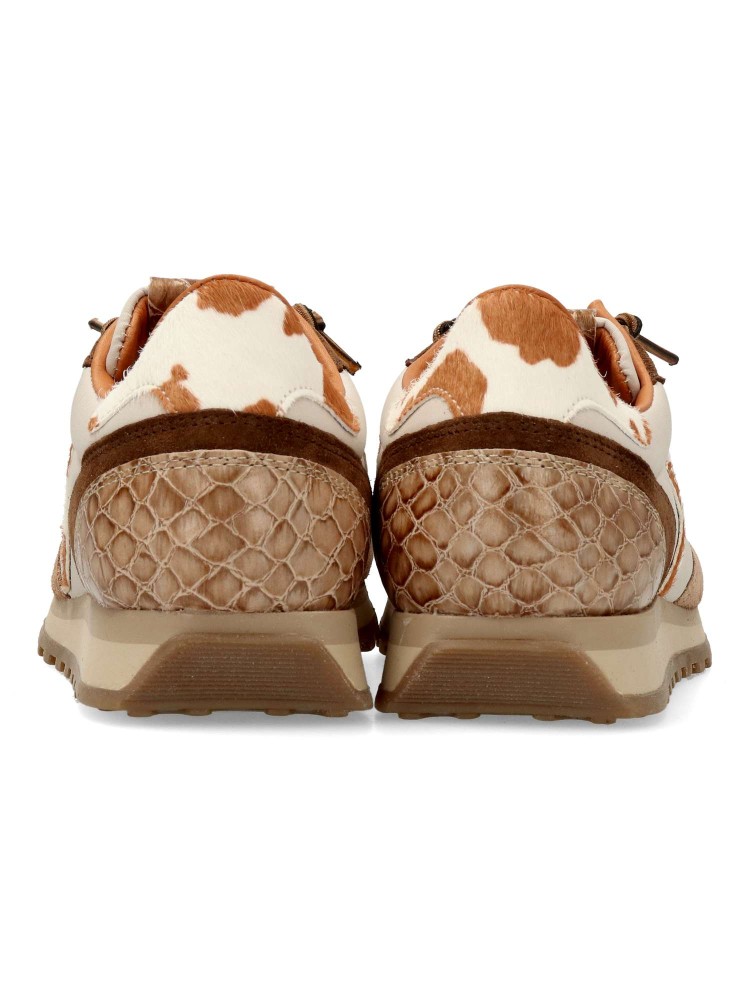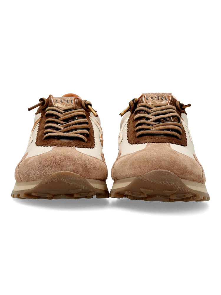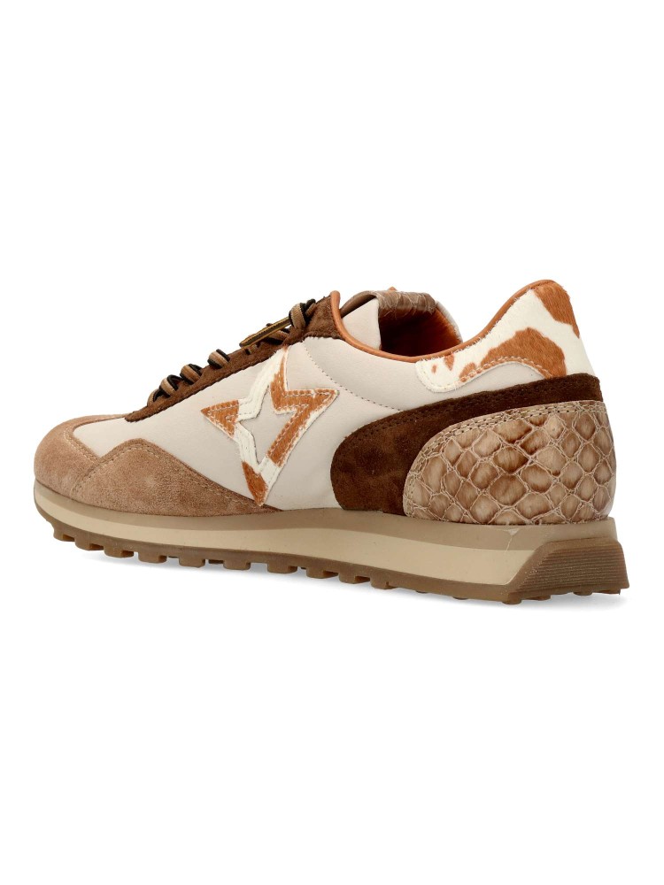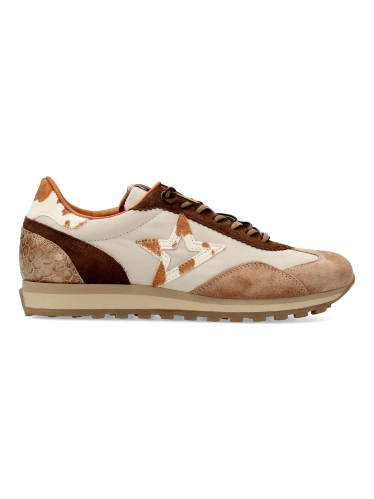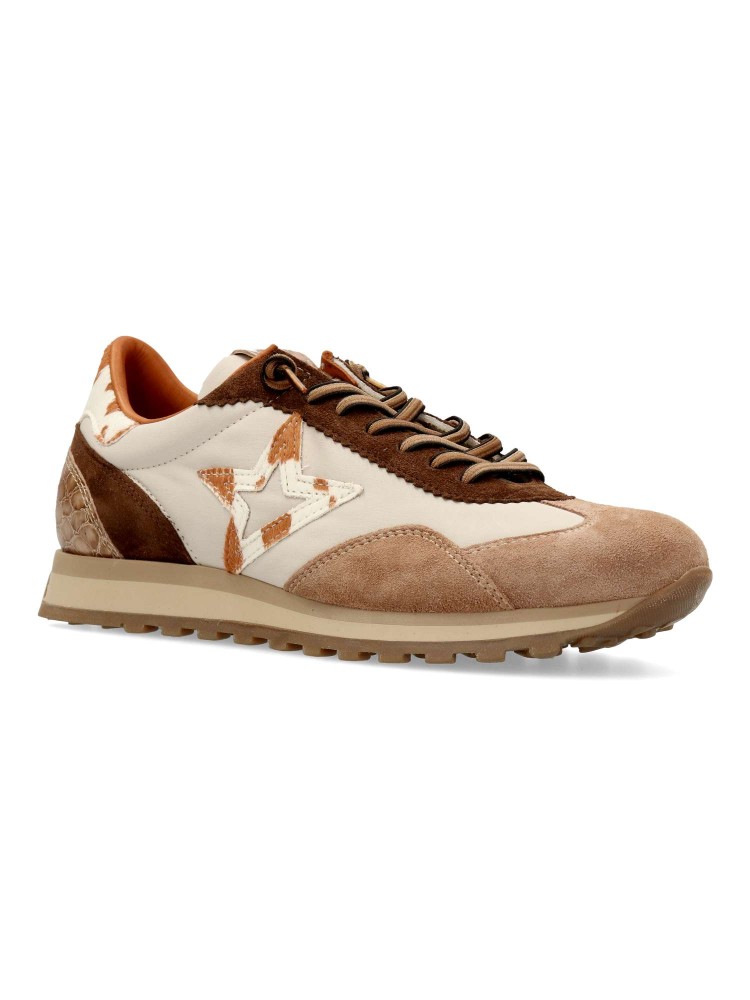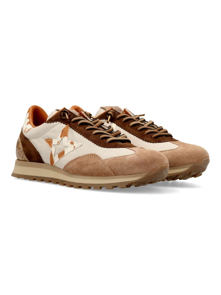 Deportivo casual de mujer con aspecto vintage. Sneakers cómodo fabricado en piel natural y textil. Cierre de cordones elásticos. Plantilla acolchada extraible. Suela de goma. Diseño urbano para combinar con tus mejores looks. Hecho en España.