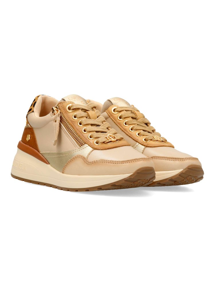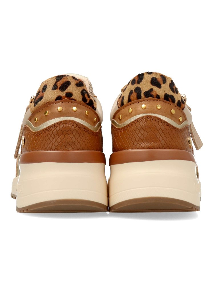 Zapatilla de mujer, fabricada en piel de alta calidad. Suela de goma antideslizante. Plantilla acolchada y extraíble. Cierre de cremallera lateral y cordones ajustables. Detalle trasero con tachuelas. Sencilla y elegante, un básico para tu armario.
