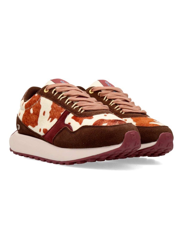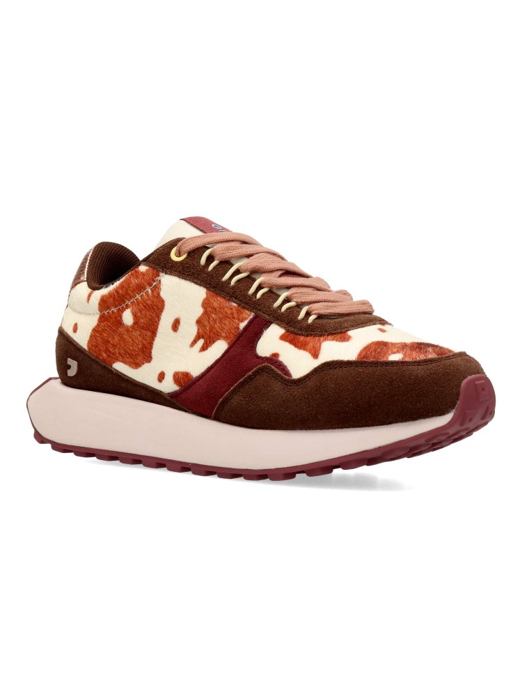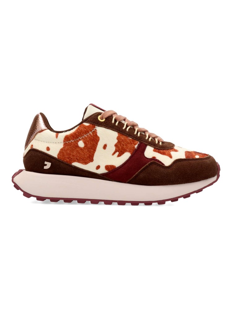 Zapatillas de piel serraje con estampado de vaca tipo pelo. Cierre de cordones. Cuentan con plantilla acolchada y extraíble. Entresuela EVA y suela de caucho. Modelo cómodo y versátil, que podrás combinar con tus mejores outfits urbanos.