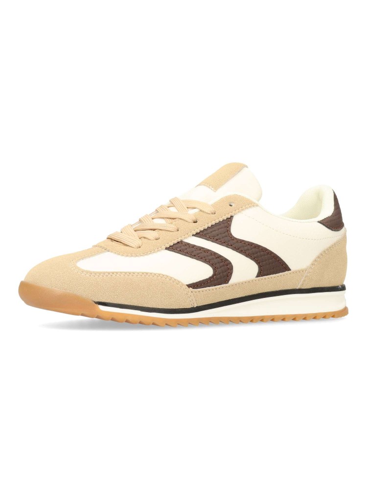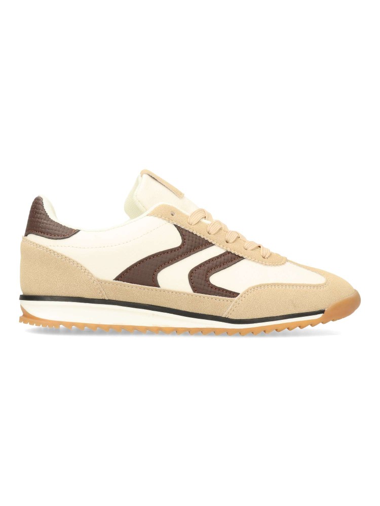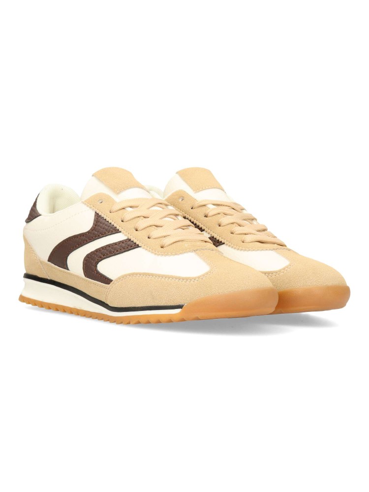 Zapatilla deportiva estilo casual. Cierre de cordones. Sneakers cómodo, fabricado en piel sintética, con suela de goma dentada. Plantilla acolchada y extraible. Color beige. Zapatilla con diseño retro sport, ideal para combinar con tus looks urbanos.