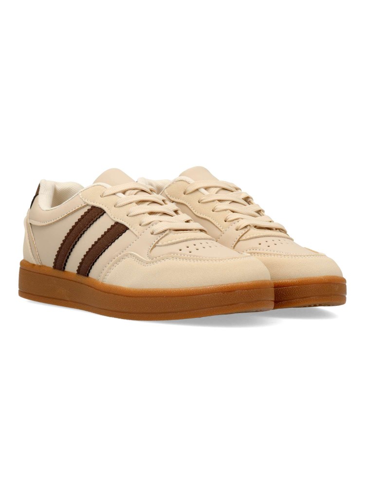 Zapatilla deportiva estilo casual. Cierre de cordones. Sneakers cómodo, fabricado en piel sintética, con suela de goma. Plantilla acolchada y extraible. Color beige. Zapatilla con diseño versátil, ideal para combinar con tus looks de temporada.