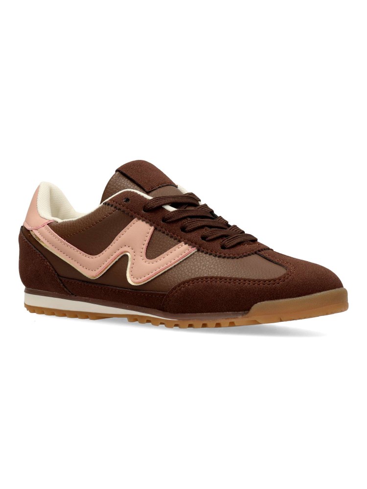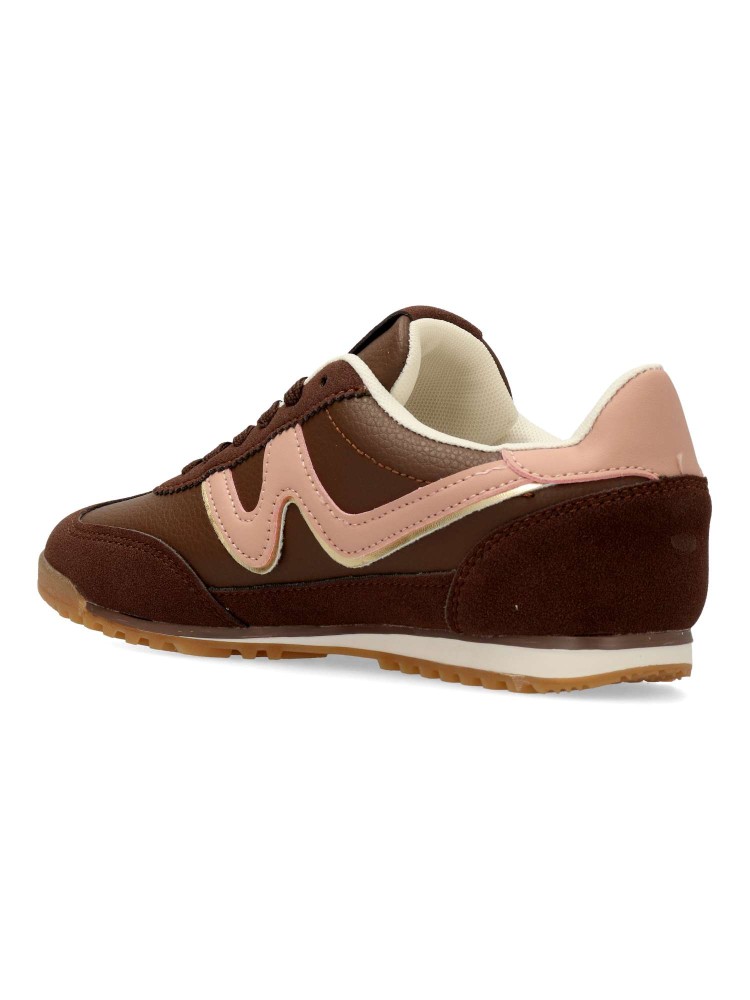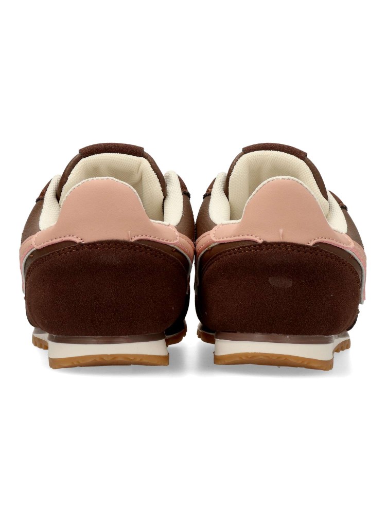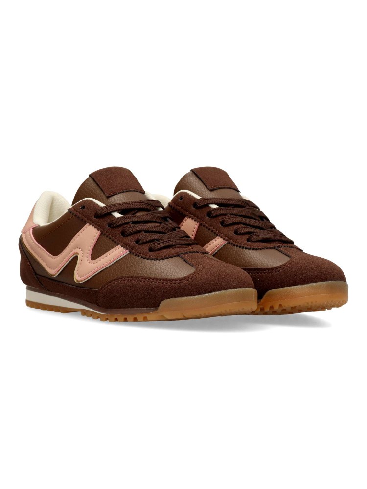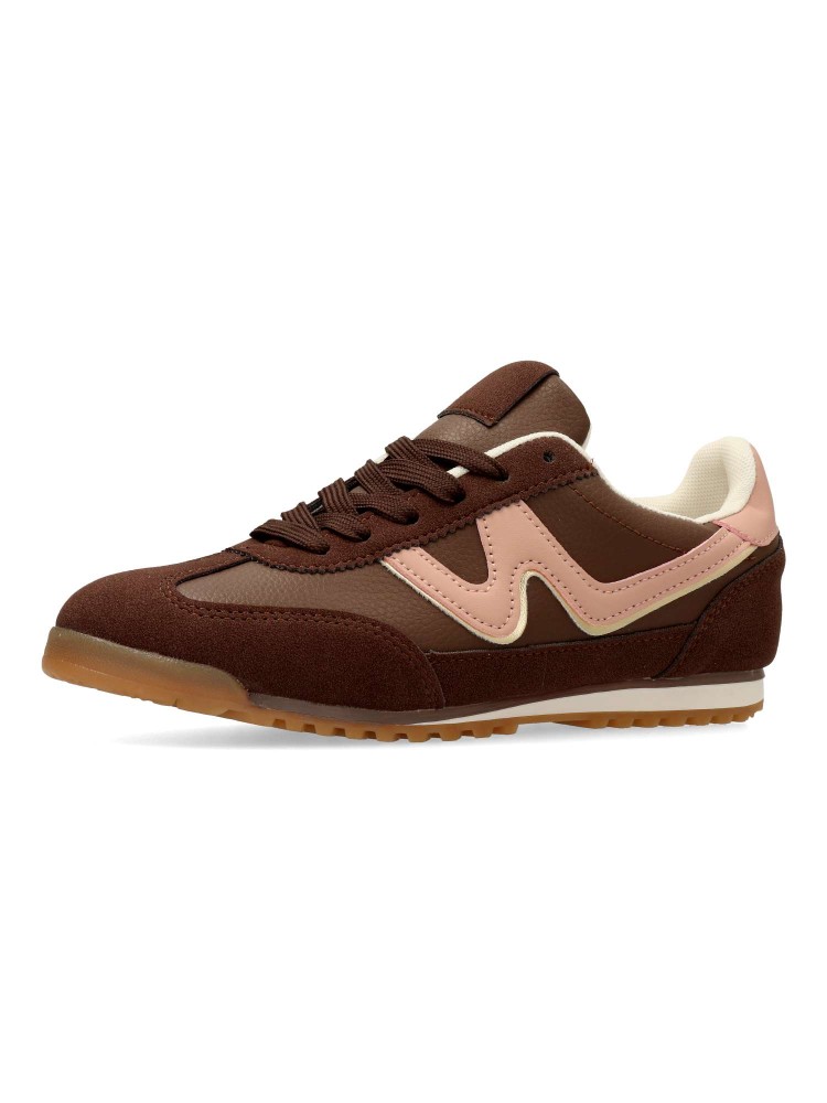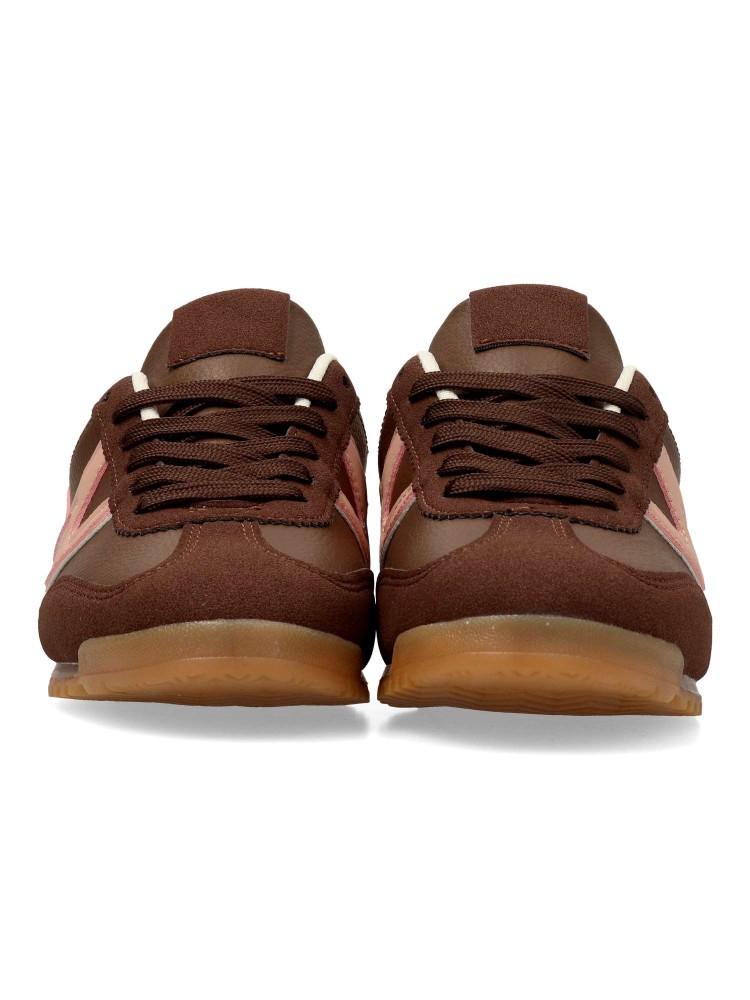 Zapatilla deportiva estilo casual. Cierre de cordones. Sneakers cómodo, fabricado en piel sintética, con suela de goma. Plantilla acolchada y extraible. Color marrón. Zapatilla con diseño sport, ideal para combinar con tus outfits urbanos.