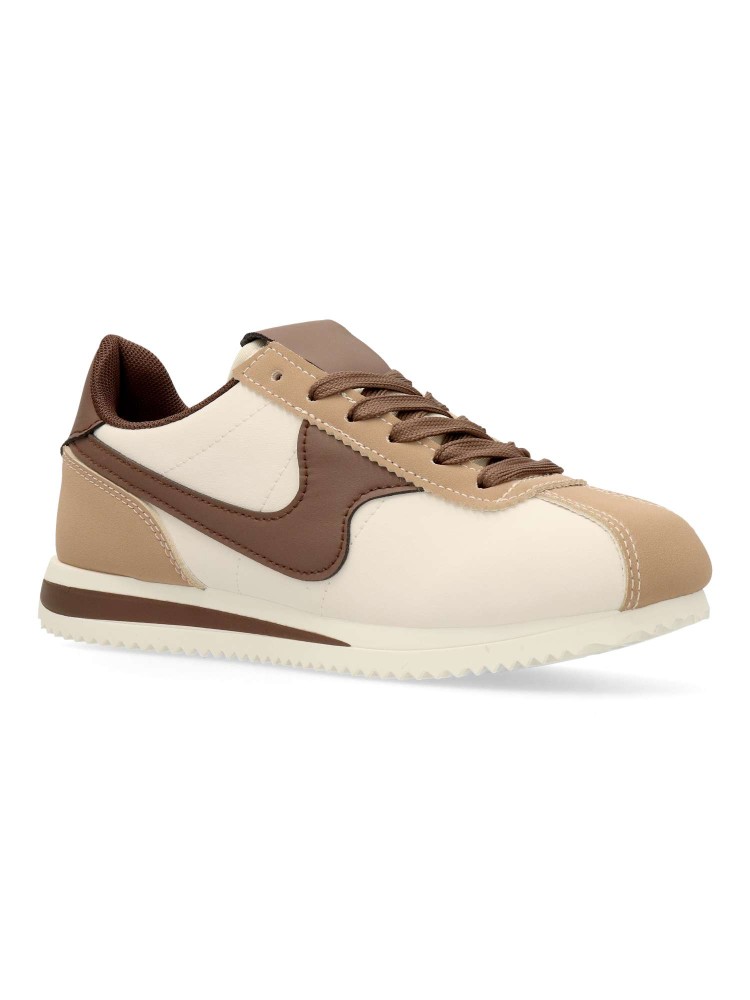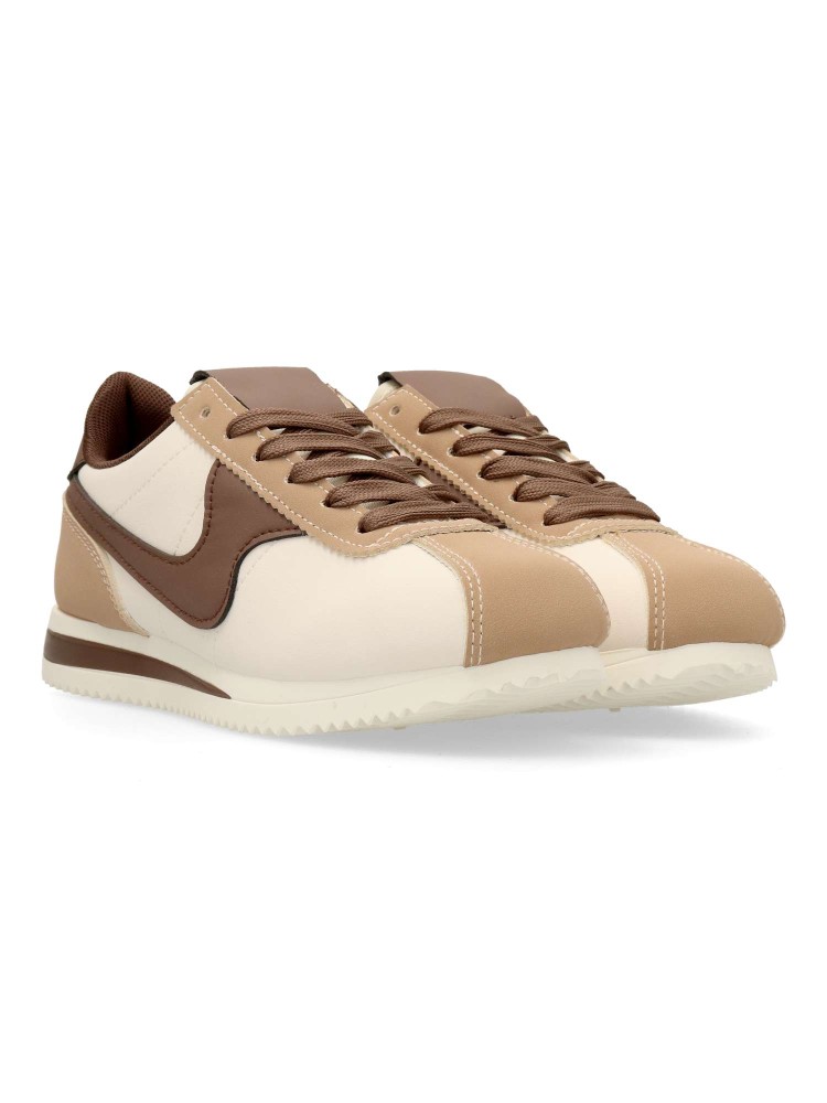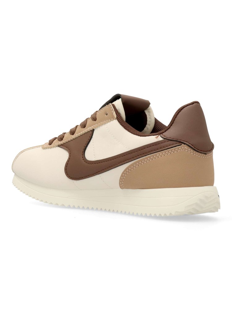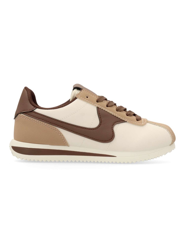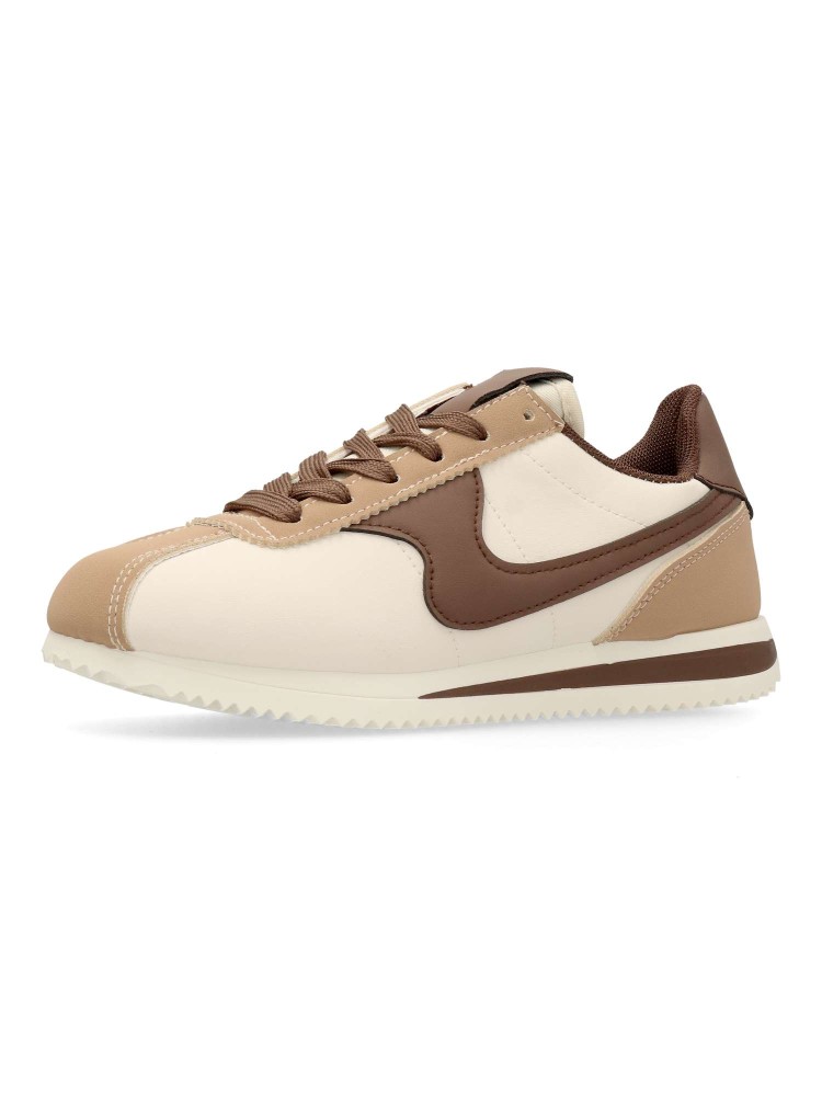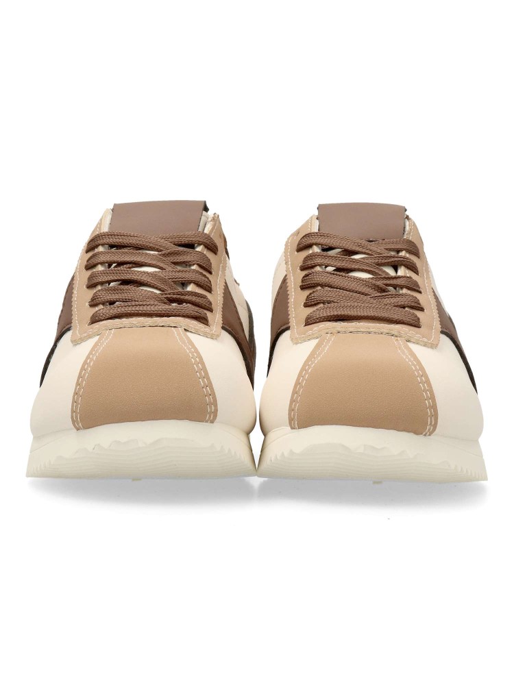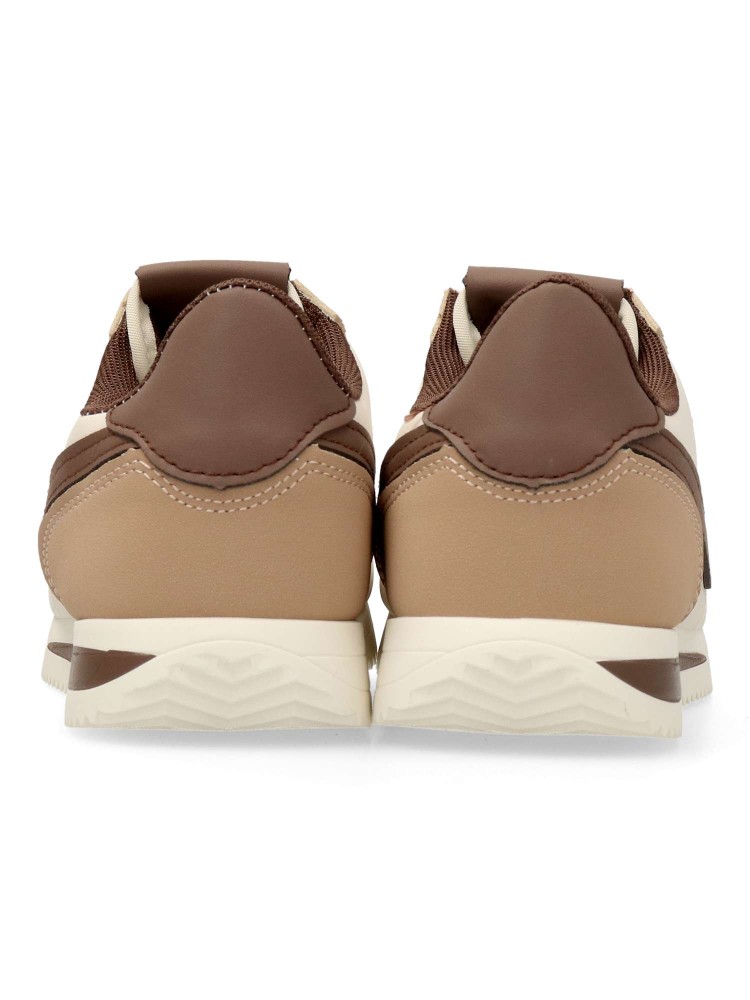 Zapatilla deportiva de mujer, estilo casual. Cierre de cordones. Sneakers fabricado en material sintético, con suela de goma. Plantilla acolchada y extraíble. Color beige-marrón. Diseño sport vintage, ideal con tus looks urbanos.