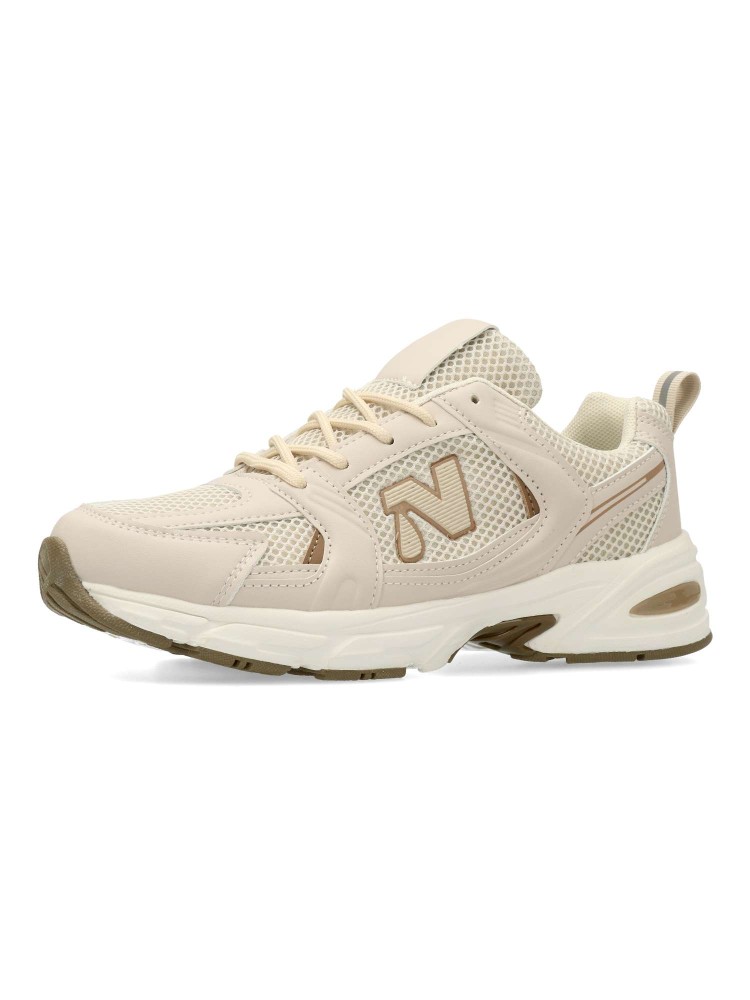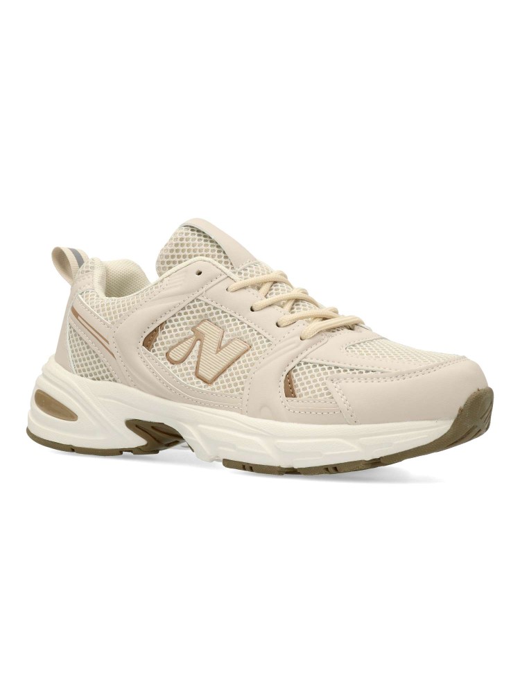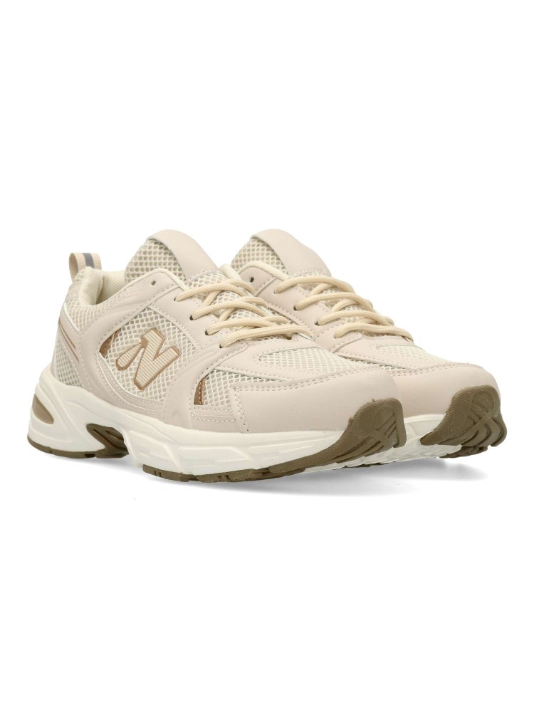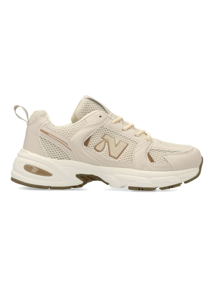 Zapatilla deportiva de mujer, estilo casual. Cierre de cordones. Sneakers fabricado en material sintético y textil, con suela de goma. Plantilla acolchada y extraíble. Color beige-marrón. Diseño sport vintage, ideal con tus looks urbanos.