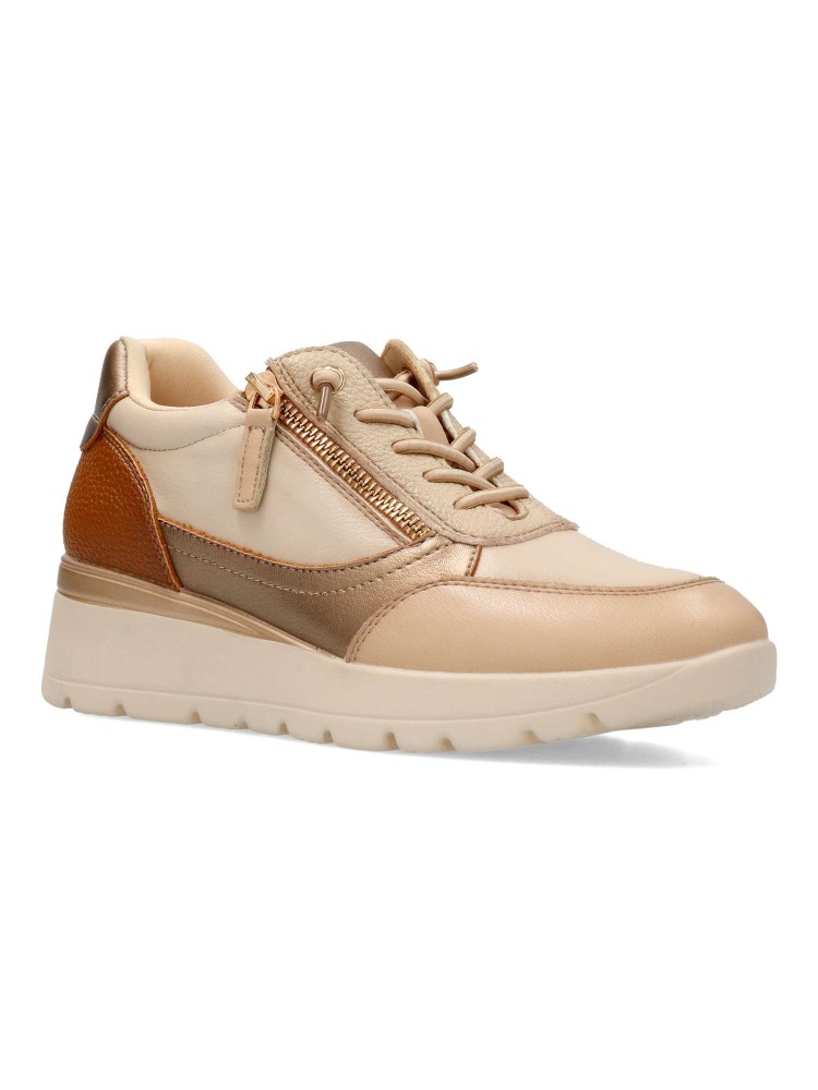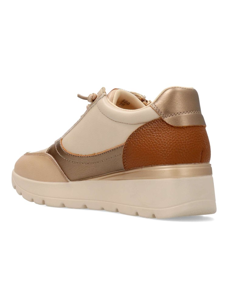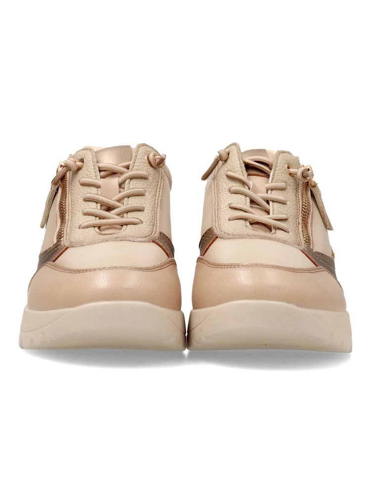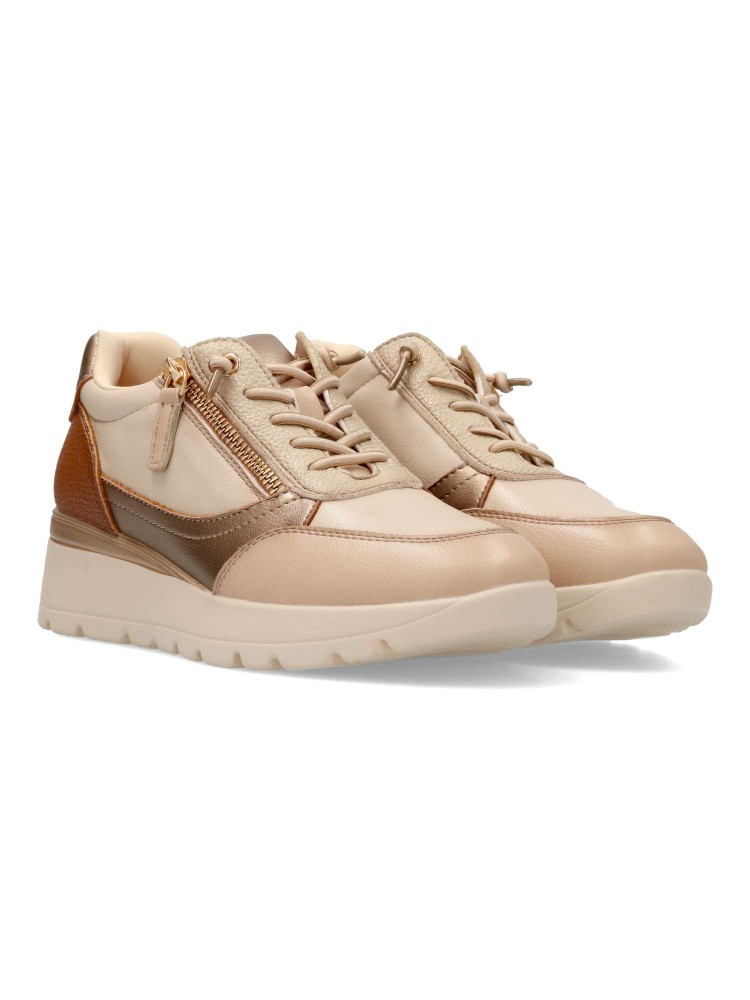 Zapato sport de mujer. Cierre de cremallera y cordón elástico. Sneakers cómodo, fabricado en piel sintética, con suela de goma. Plantilla acolchada y extraíble. Pequeña cuña de 4 cm. Diseño casual para vestir arreglado, o con looks más informales.