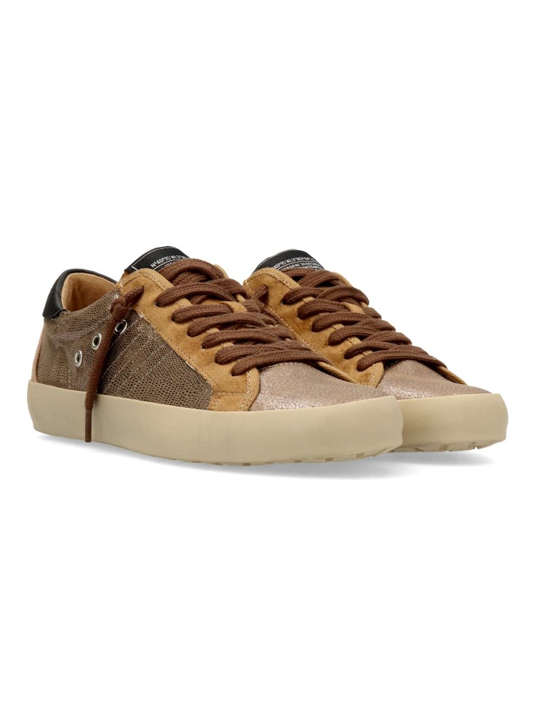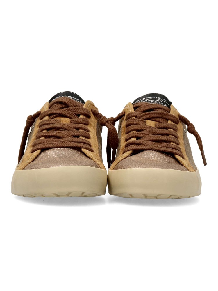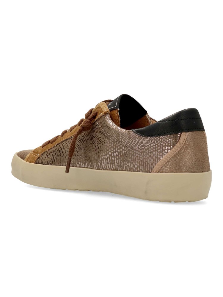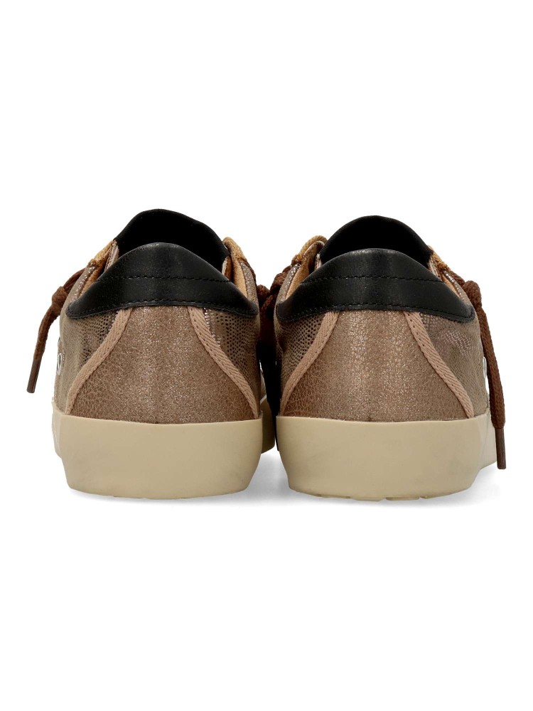 Zapatilla deportiva vintage de mujer, estilo casual. Cierre de cordones. Sneakers cómodo, fabricado en piel sintética brillante, con suela de goma flexible. Plantilla acolchada. Color bronce. Ideal para combinar con tu estilo urbano informal.