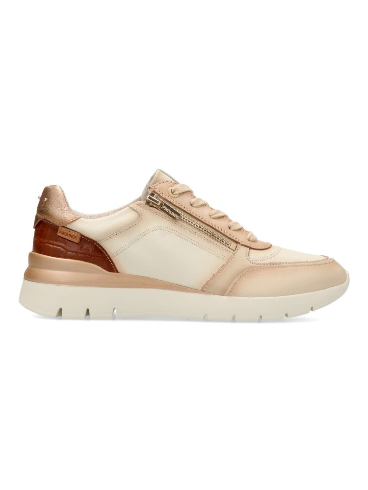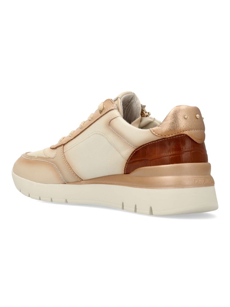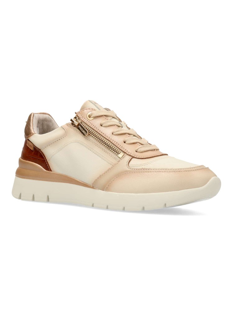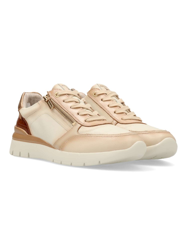 Zapato deportivo de mujer, estilo casual. Cierre de cordones y cremallera lateral. Sneakers cómodo, fabricado en piel vacuno, con suela de goma ligera y flexible. Plantilla acolchada extraíble. Color nata. Look deportivo, ideal con tu estilo urbano.